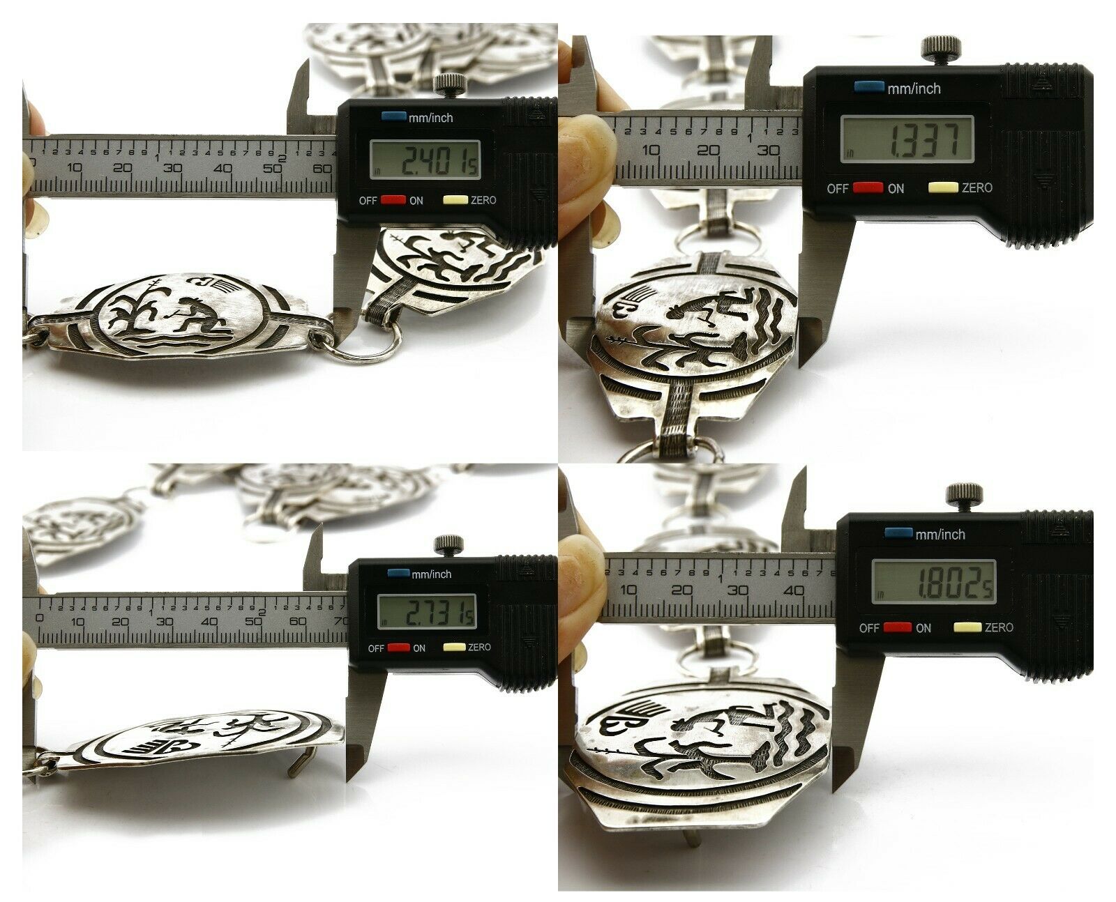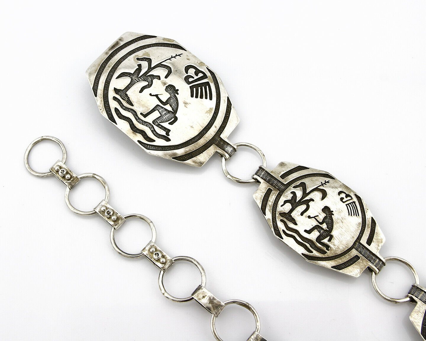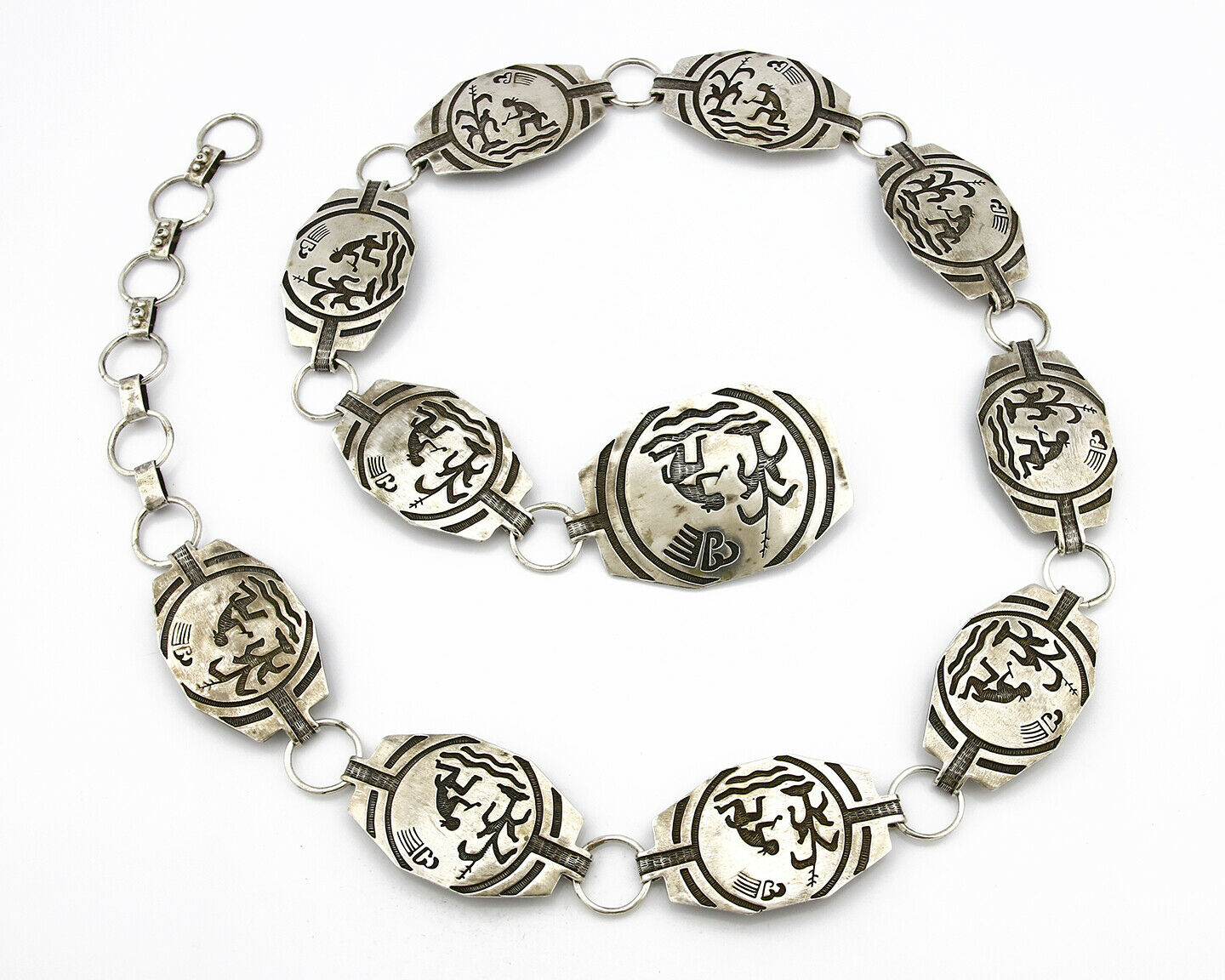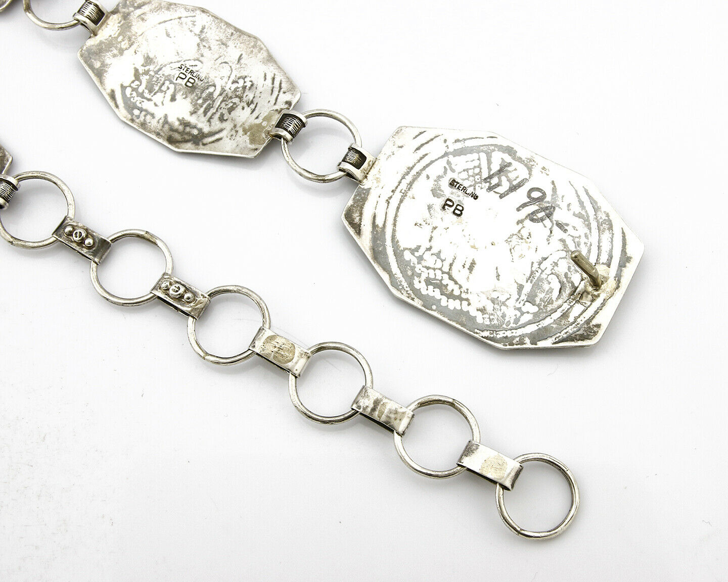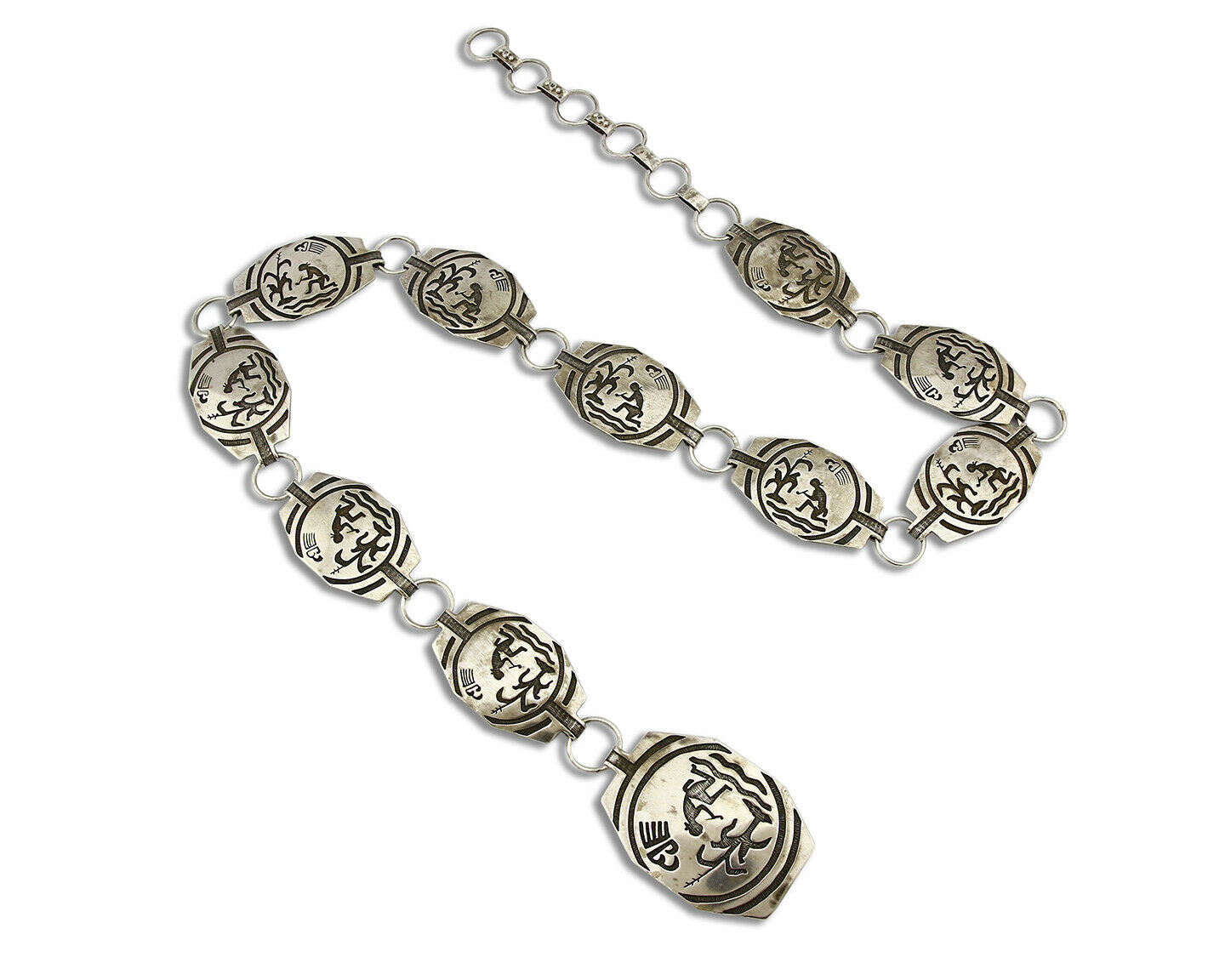 Navajo Concho Belt .925 Silver Pictograph Overlay Signed PB C.80's