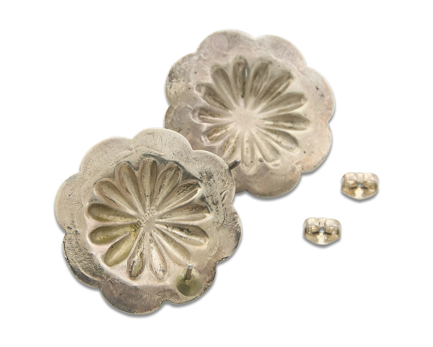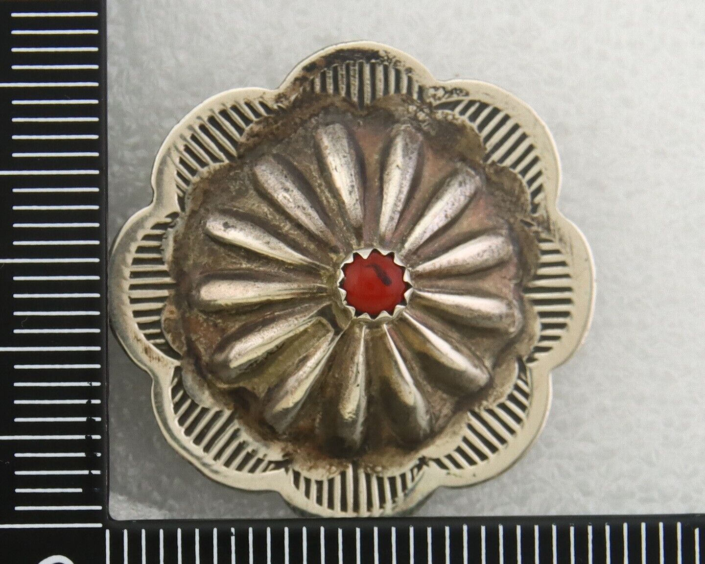 Navajo Concho Earrings 925 Silver Natural Coral Native American Artist C.80's