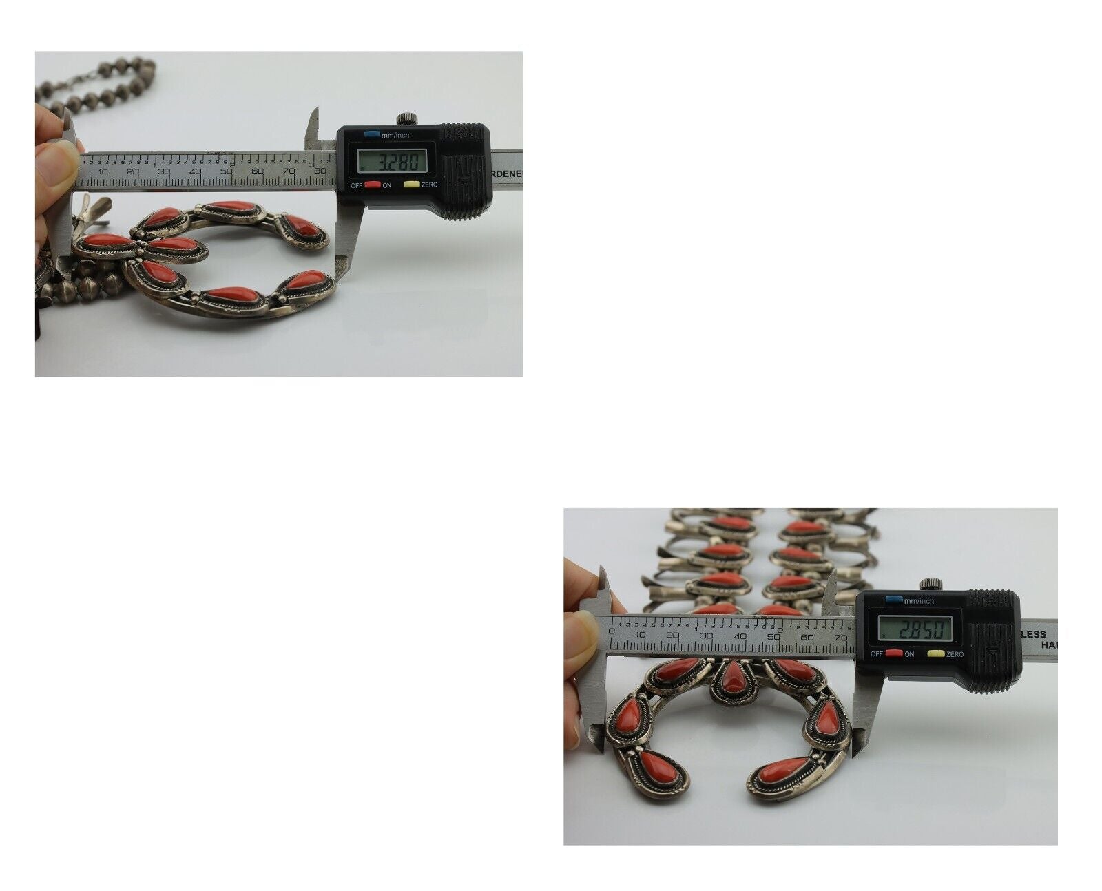 Navajo Coral Squash Necklace 925 Silver Handmade Native American Artist C.80's