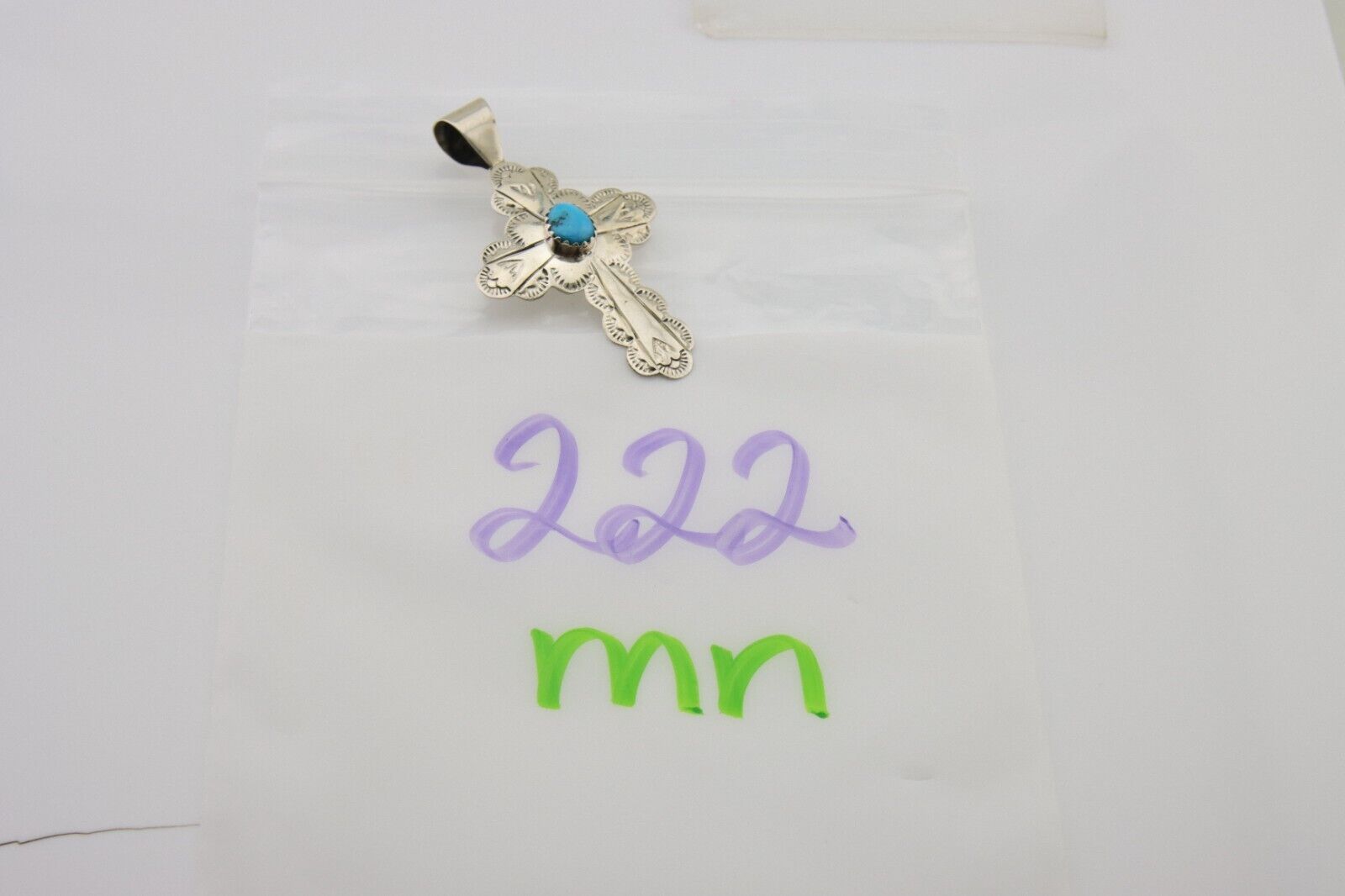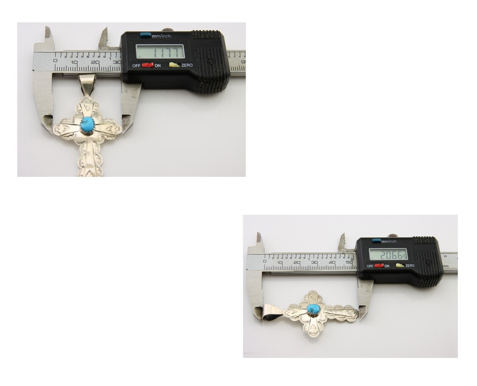 Navajo Cross Hand Stamped Pendant 925 Silver Turquoise Artist Gilbert Lee C.80s