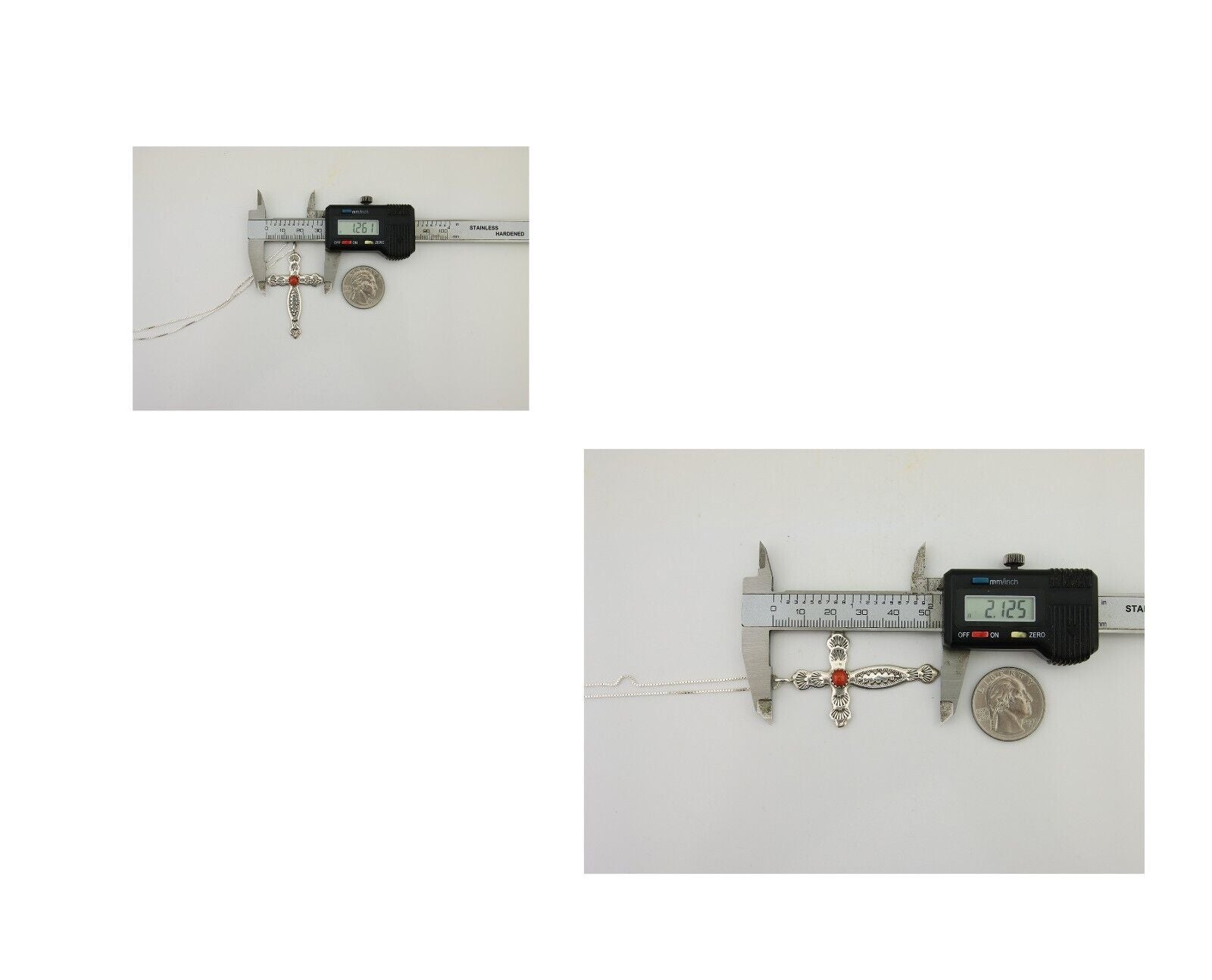 Navajo Cross Necklace 925 Silver Mediterranean Coral Native American Artist C80s