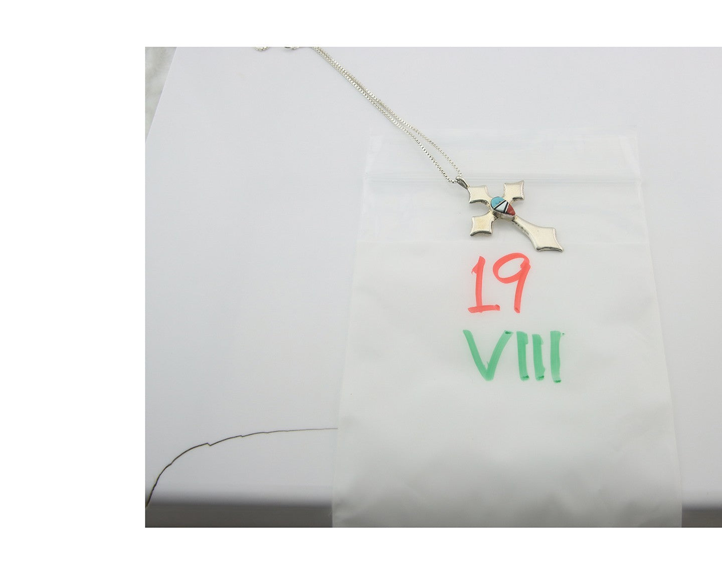 Navajo Cross Necklace Sterling Silver Authentic Natural Gemstones Signed M