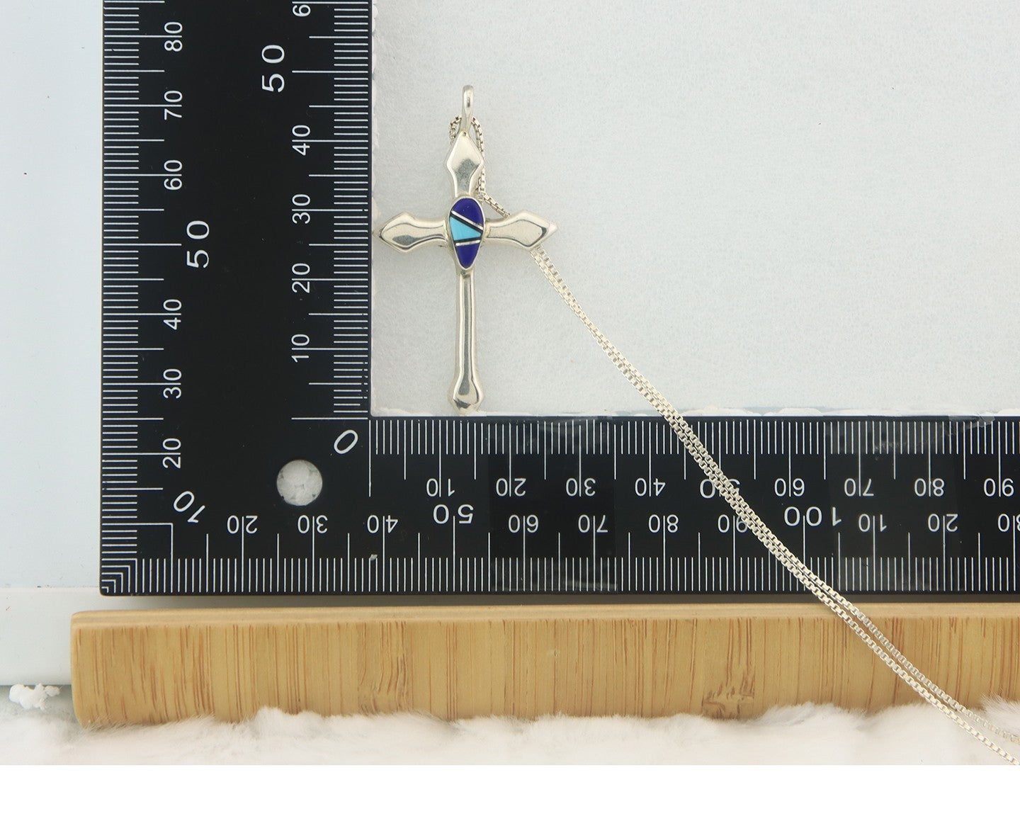 Navajo Cross Necklace Sterling Silver Authentic Natural Gemstones Signed M