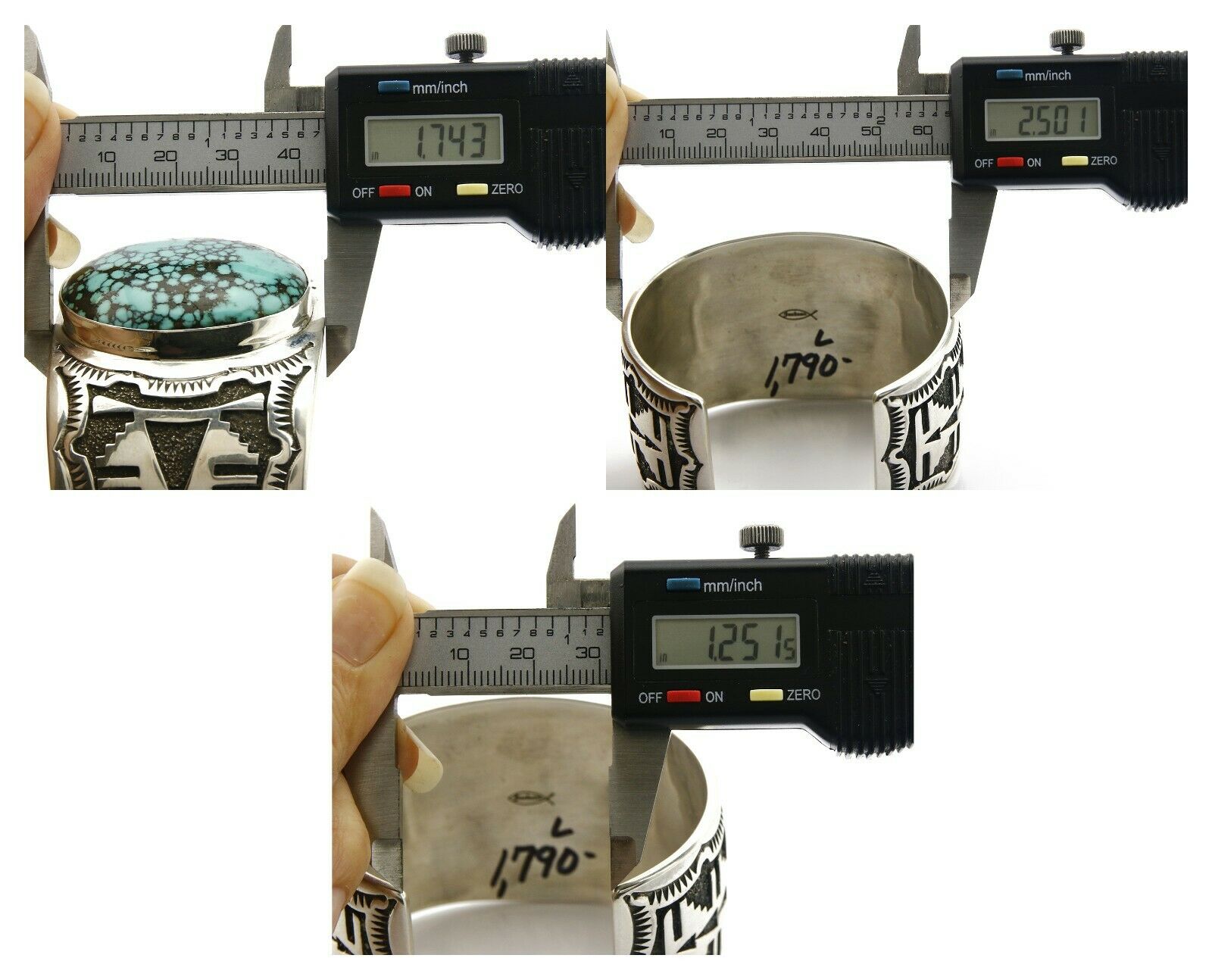 Navajo Cuff Bracelet .925 Silver Spiderweb Turquoise Signed Tommy Jackson C.80's