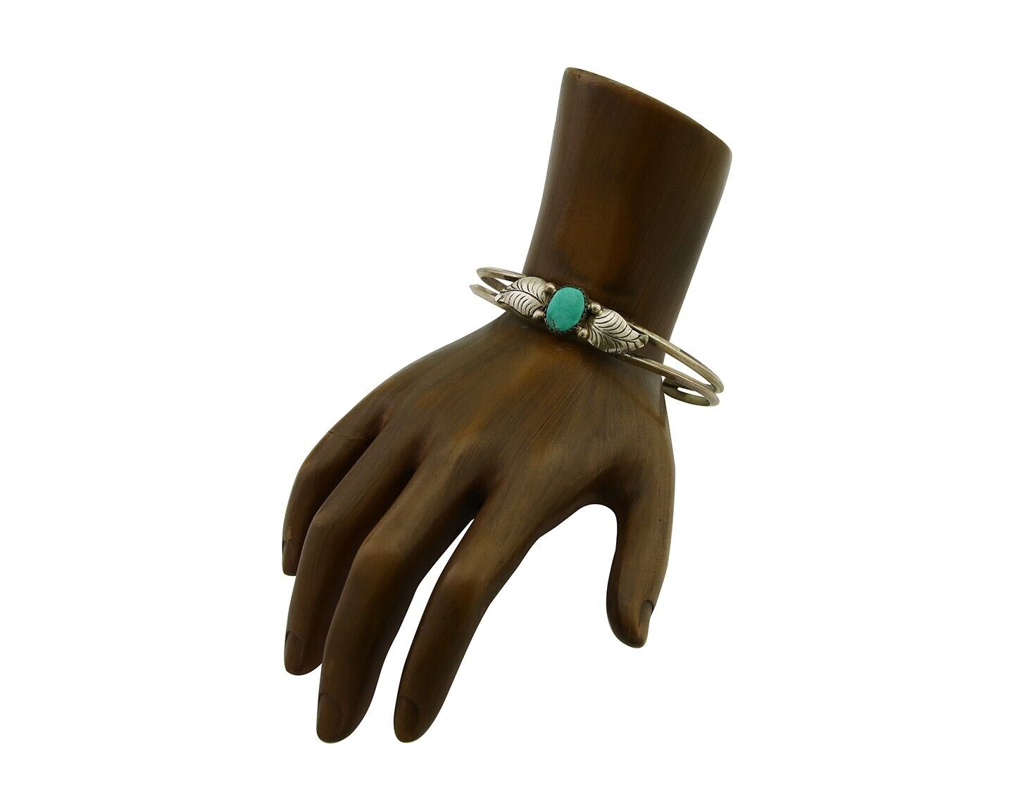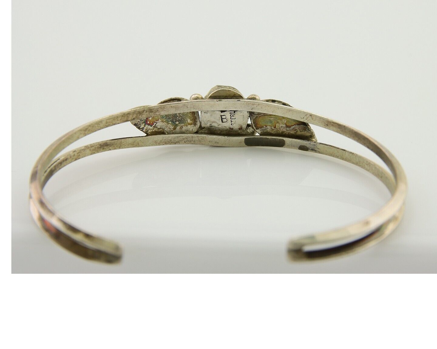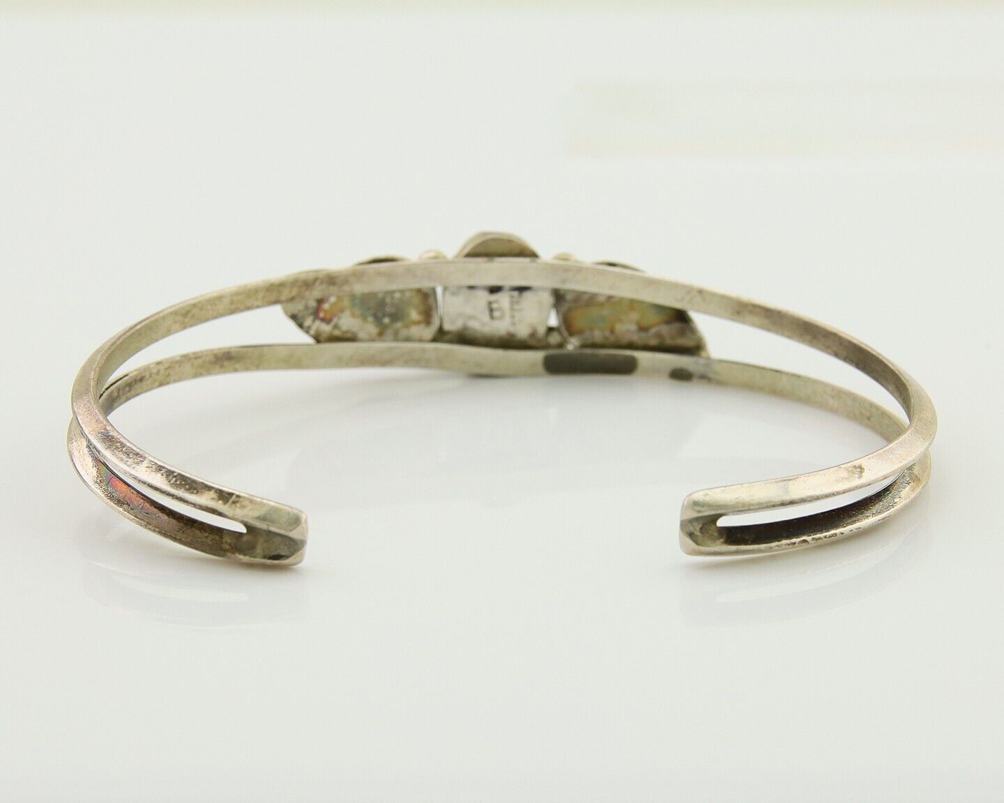 Navajo Cuff Bracelet Blue Turquoise 925 Silver Native Artist Signed BD C.80's
