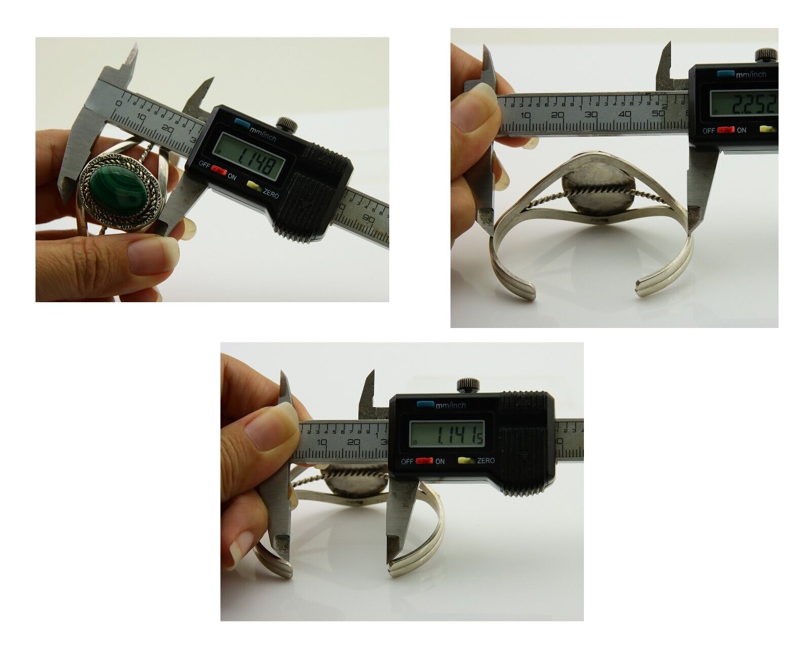 Navajo Cuff Bracelet Natural Malachite 925 Silver Native American Artist C.80s