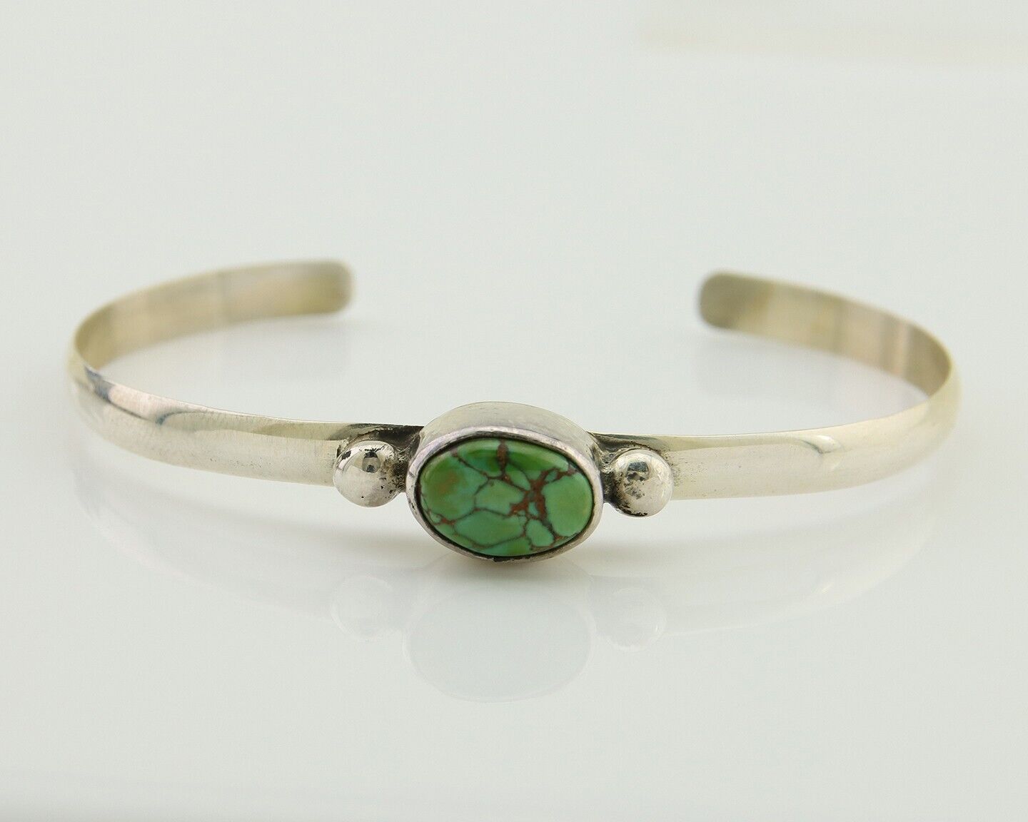 Navajo Cuff Bracelet Spiderweb Turquoise 925 Silver Native American Artist C.80s
