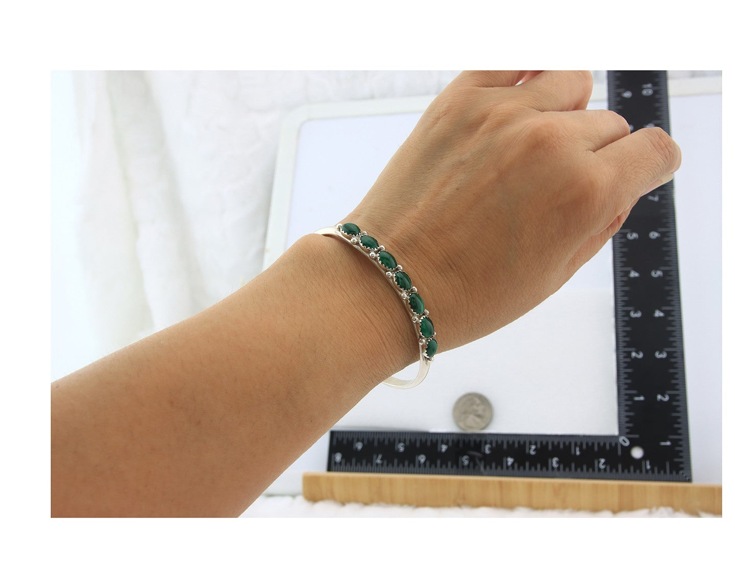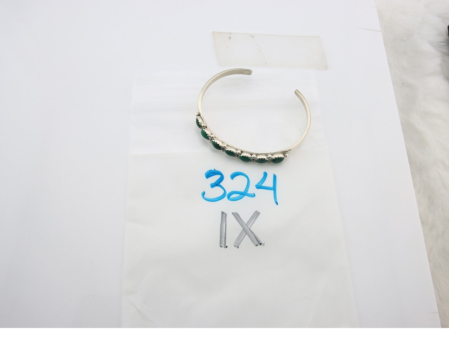 Navajo Cuff Bracelet Sterling Silver Natural Malachite Vintage Signed SS