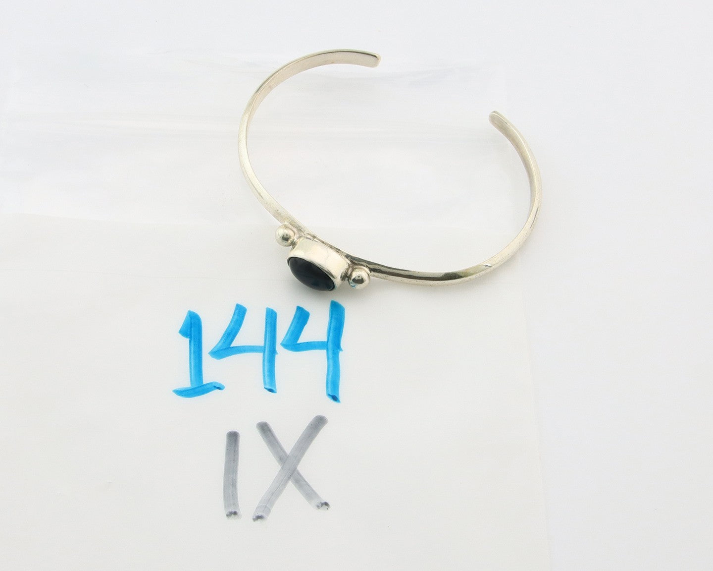 Navajo Cuff Bracelet Sterling Silver Natural Mined Black Onyx Native Artist