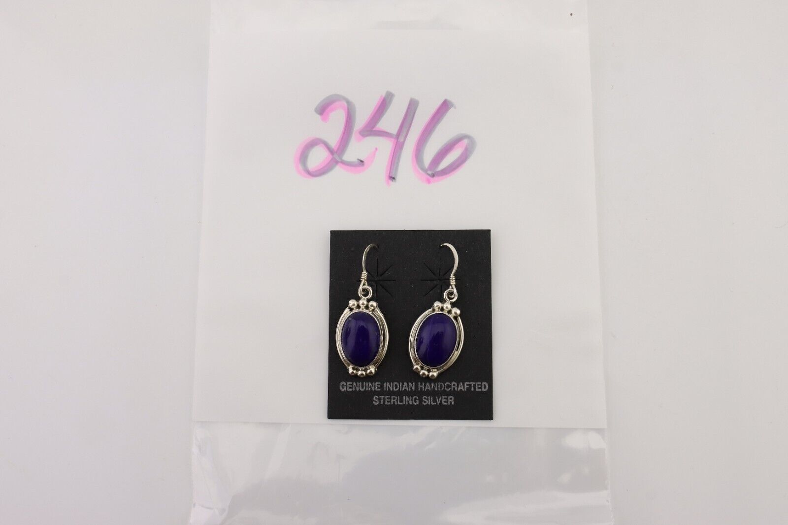 Navajo Dangle Earrings 925 Silver Lapis Lazuli Native American Artist C.80's