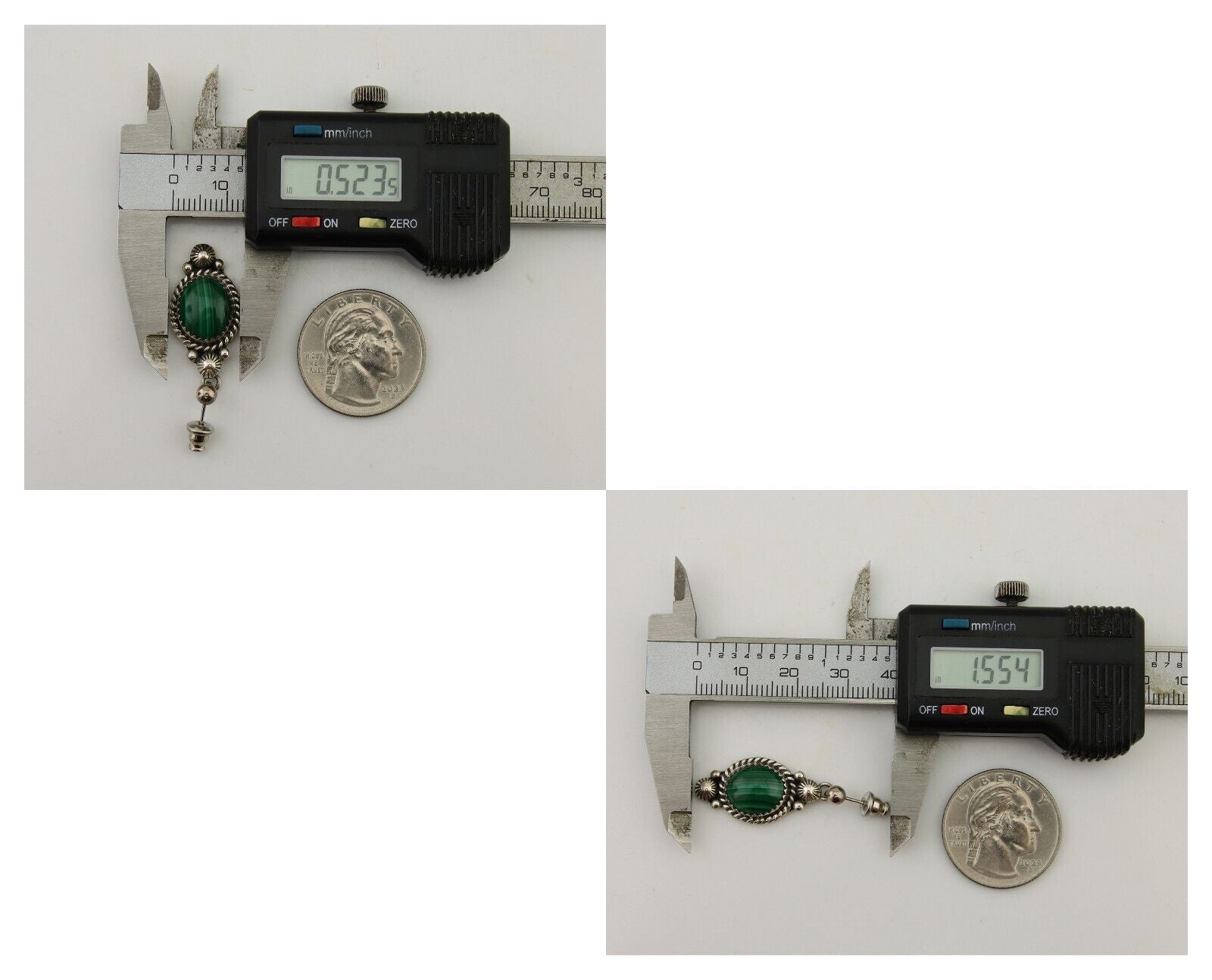 Navajo Dangle Earrings 925 Silver Malachite Native American Artist C.80's