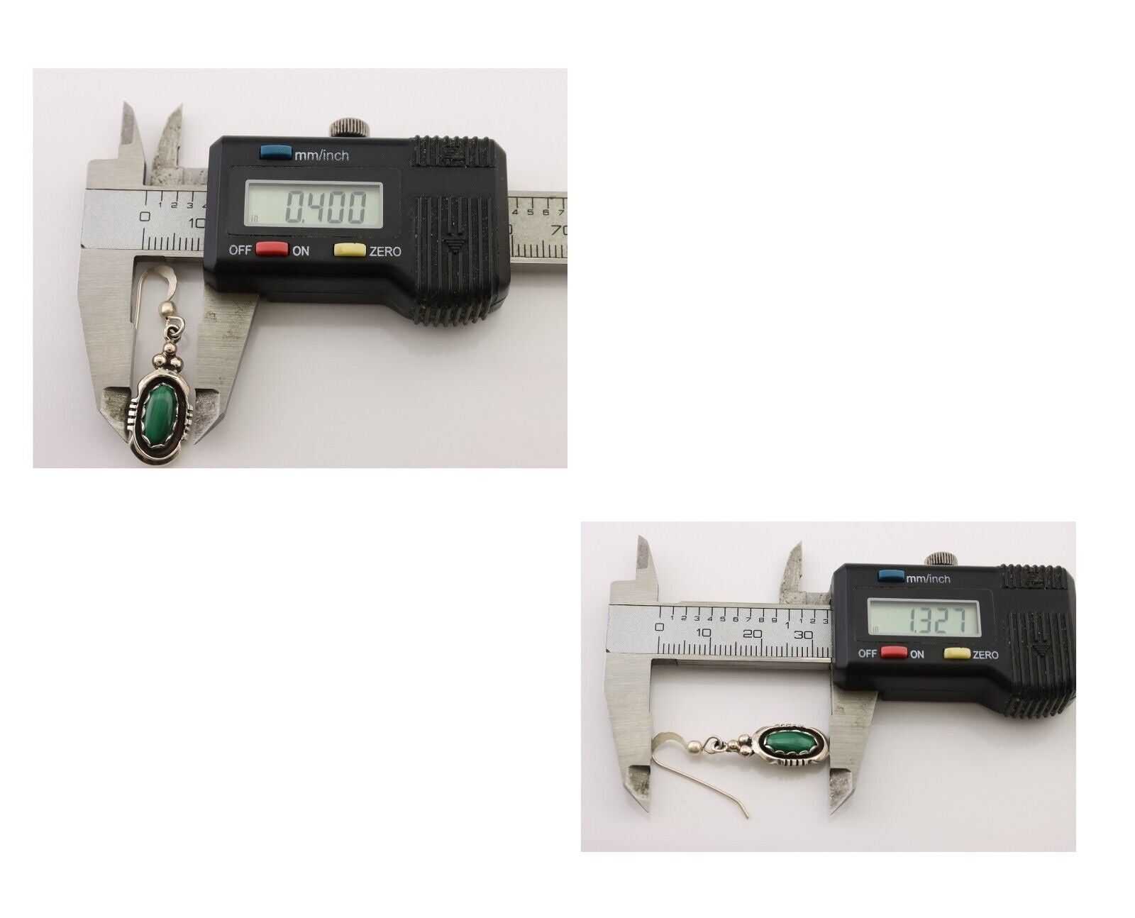 Navajo Dangle Earrings 925 Silver Natural Malachite Native American Artist C.80s