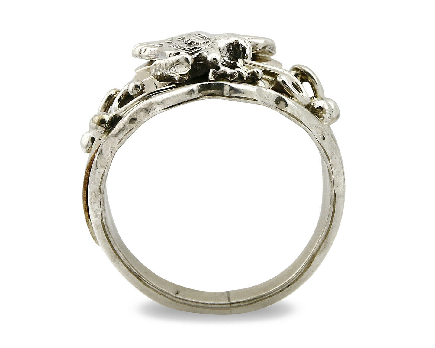 Navajo Eagle Ring .925 SOLID Silver & 12K GF Handmade Signed Artist S Circa 1980