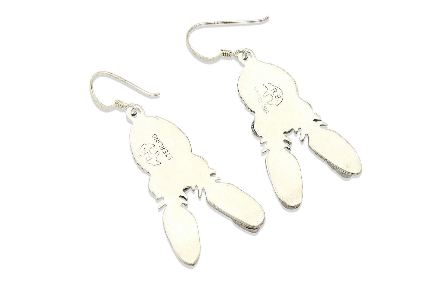 Navajo Earrings .925 Silver Blue Nugget Turquoise Artist Signed Running Bear C80