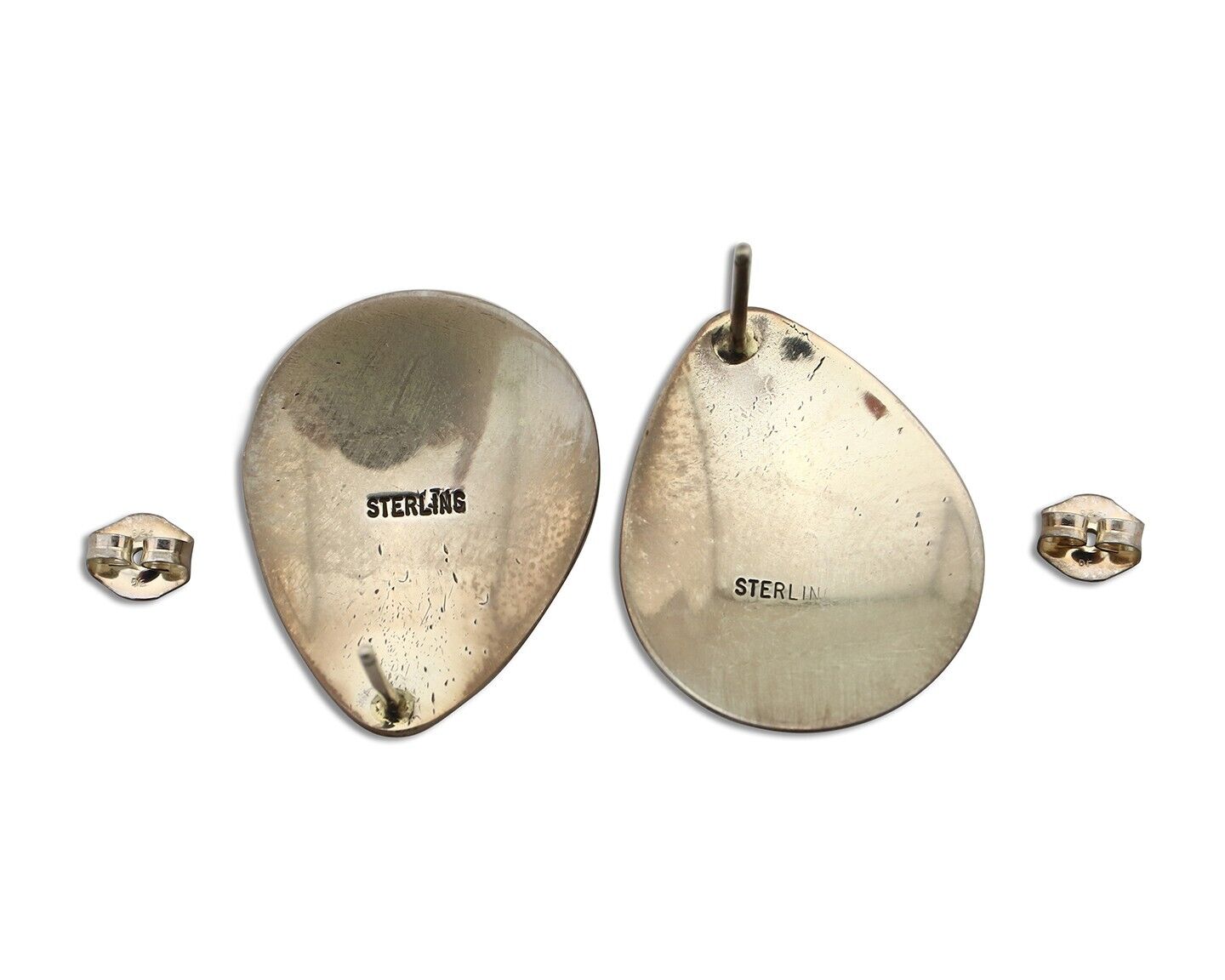 Navajo Earrings 925 Silver Blue Spiderweb Turquoise Native American Artist C90s