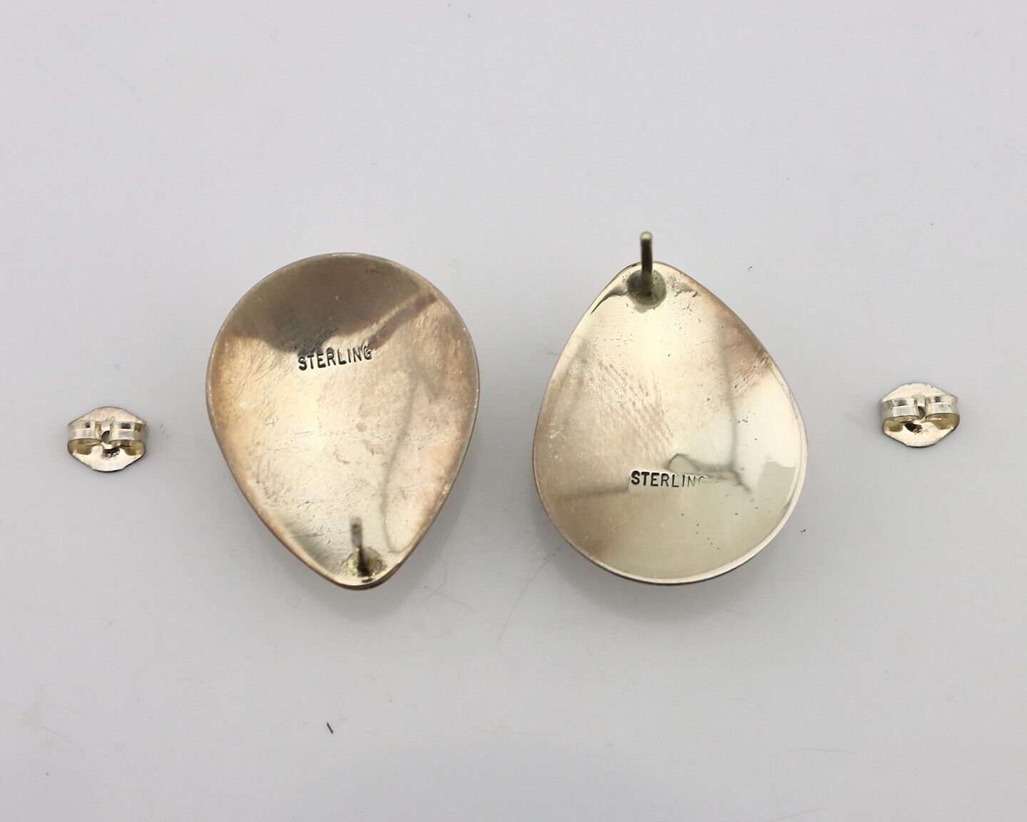 Navajo Earrings 925 Silver Blue Spiderweb Turquoise Native American Artist C90s