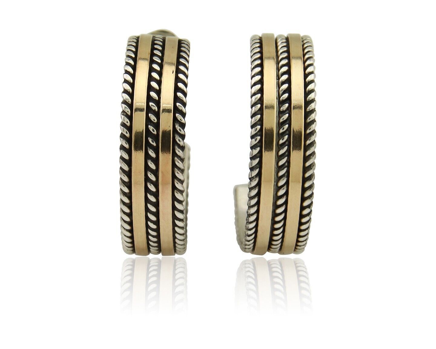 Navajo Earrings 925 Silver & Gold Handmade Artist Signed Tom Hawk C.80's