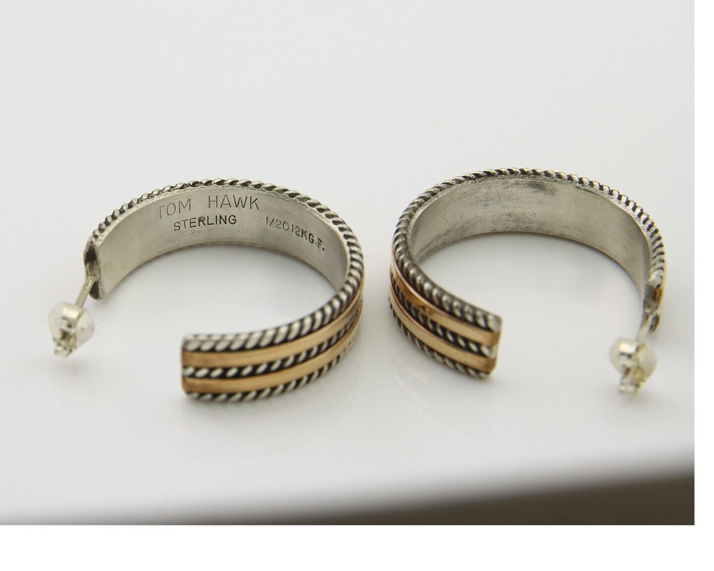 Navajo Earrings 925 Silver & Gold Handmade Artist Signed Tom Hawk C.80's