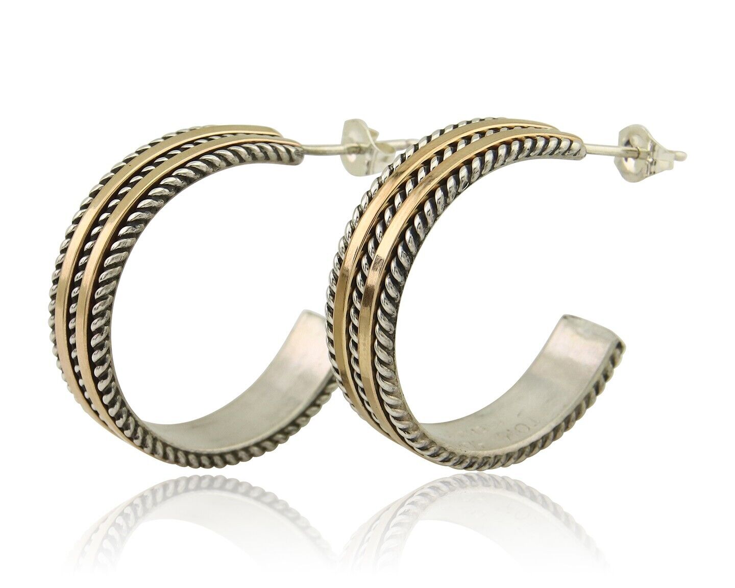Navajo Earrings 925 Silver & Gold Handmade Artist Signed Tom Hawk C.80's