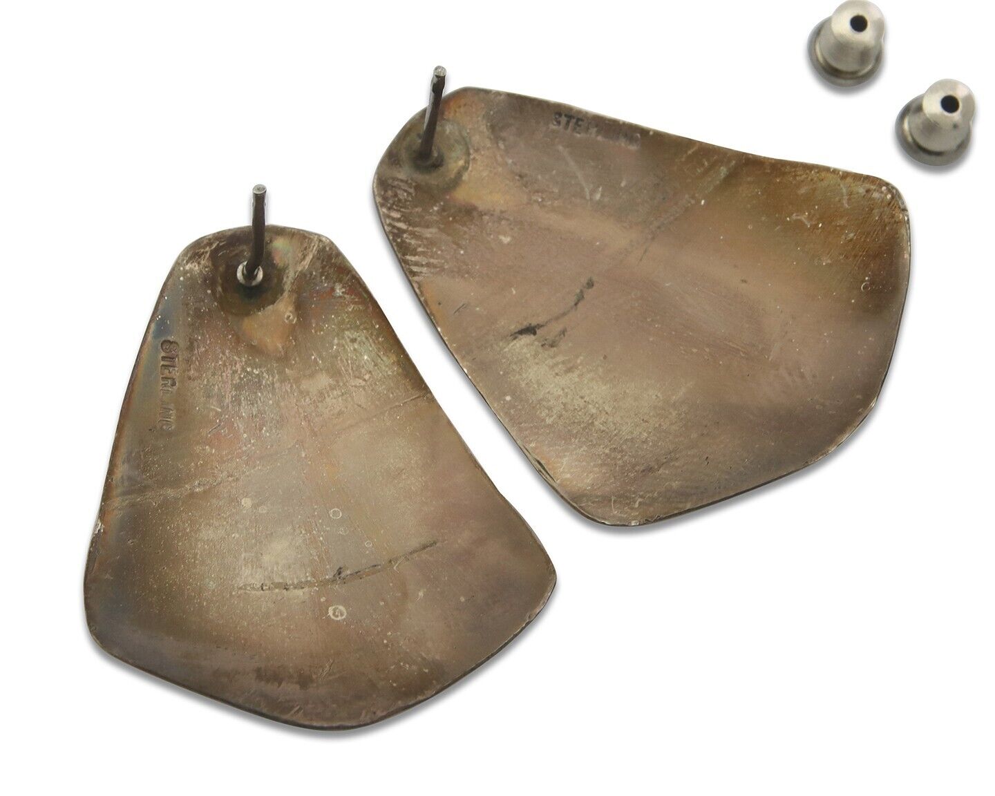 Navajo Earrings 925 Silver Handmade Natural Turquoise Native Artist C.80's