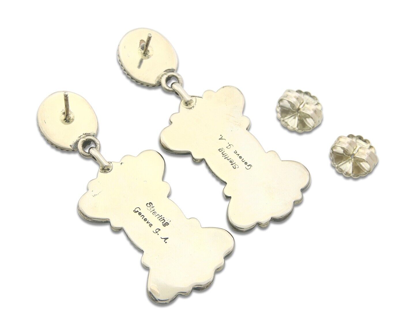 Navajo Earrings 925 Silver Handmade Natural Turquoise Signed Geneva JA C.80's