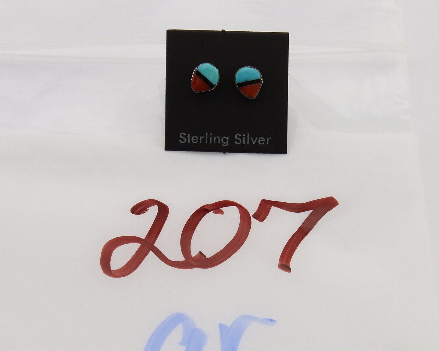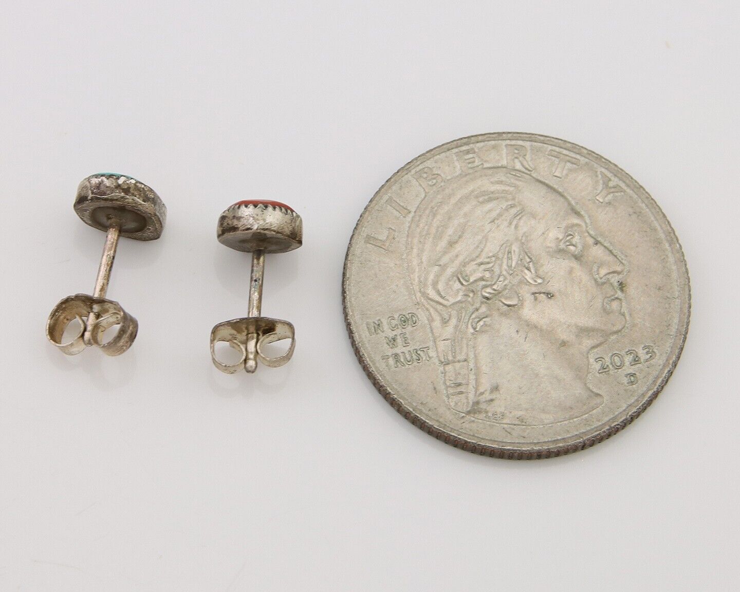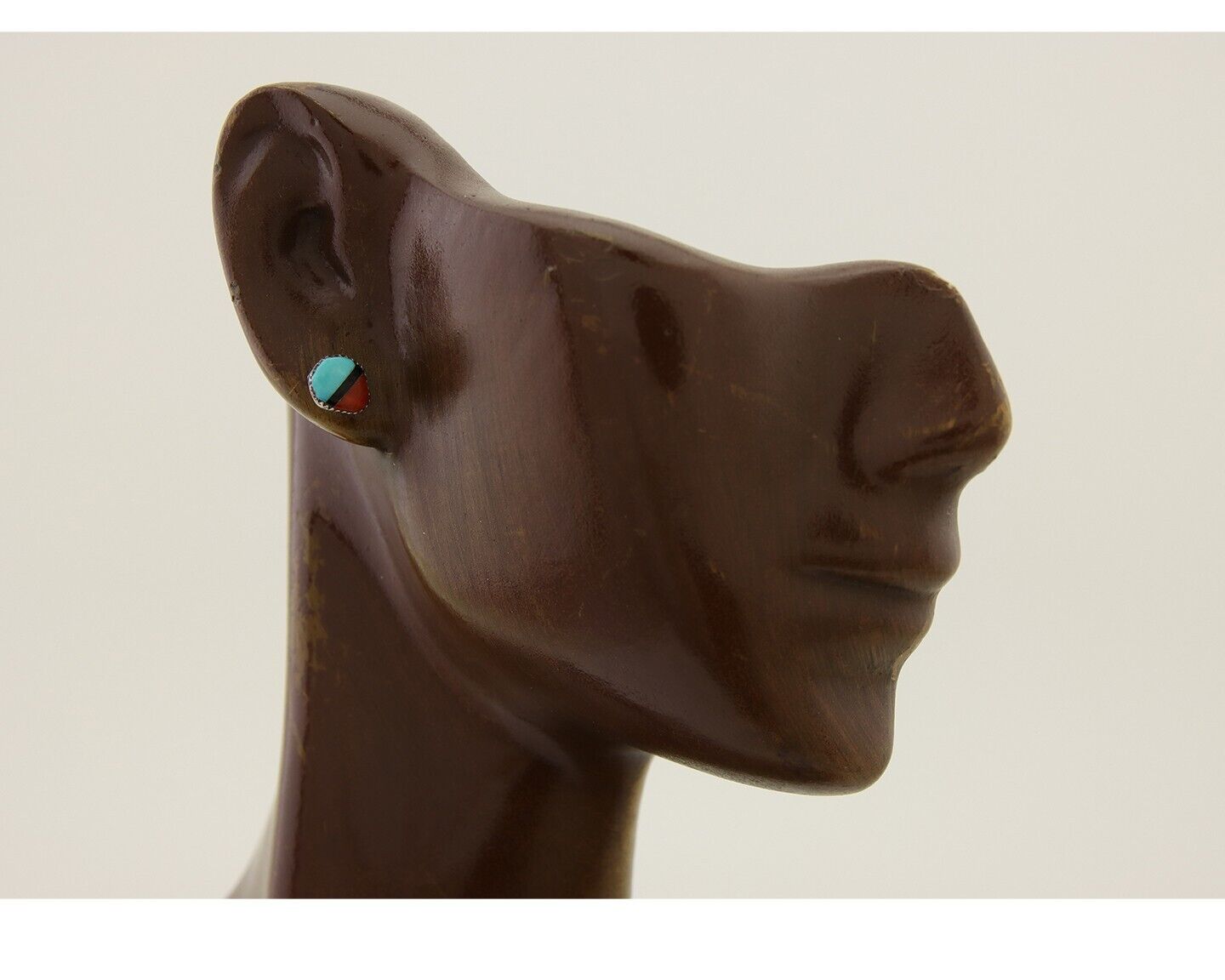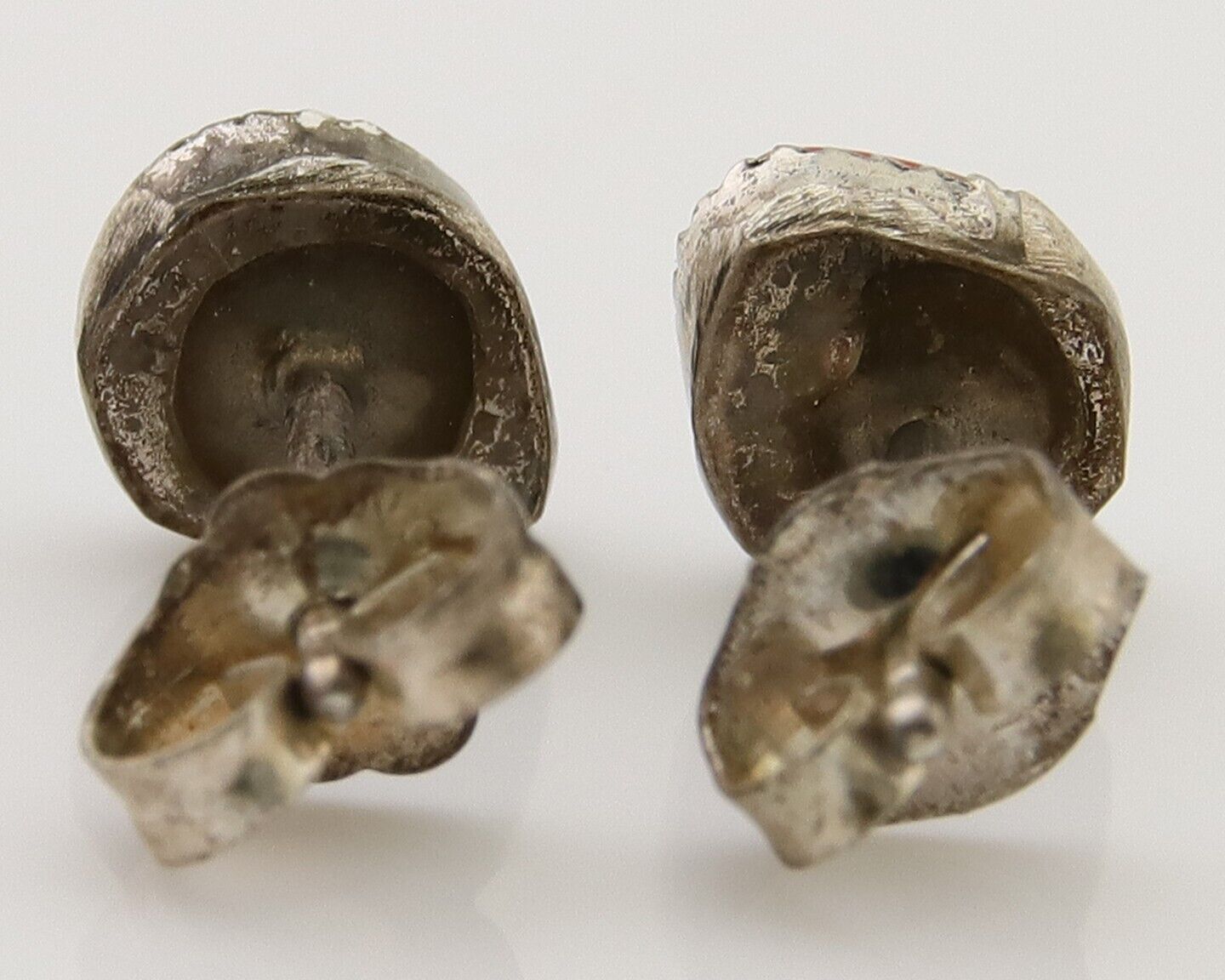 Navajo Earrings 925 Silver Inlaid Natural Onyx & Coral Native Artist C.80's