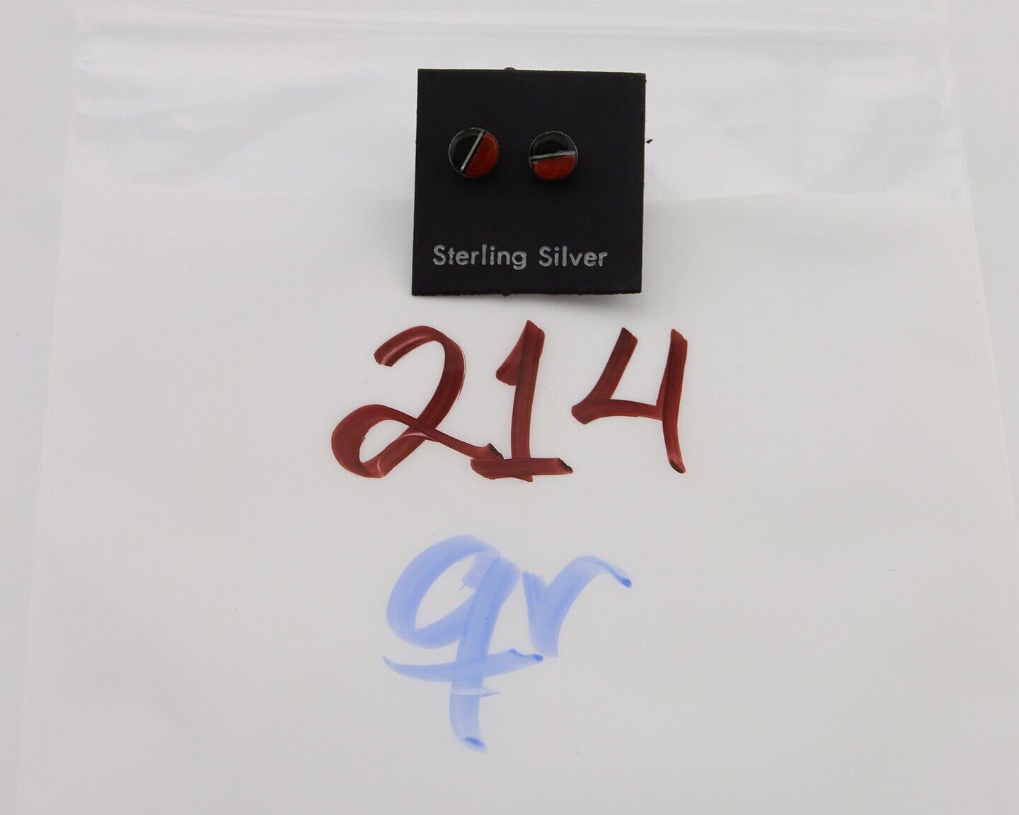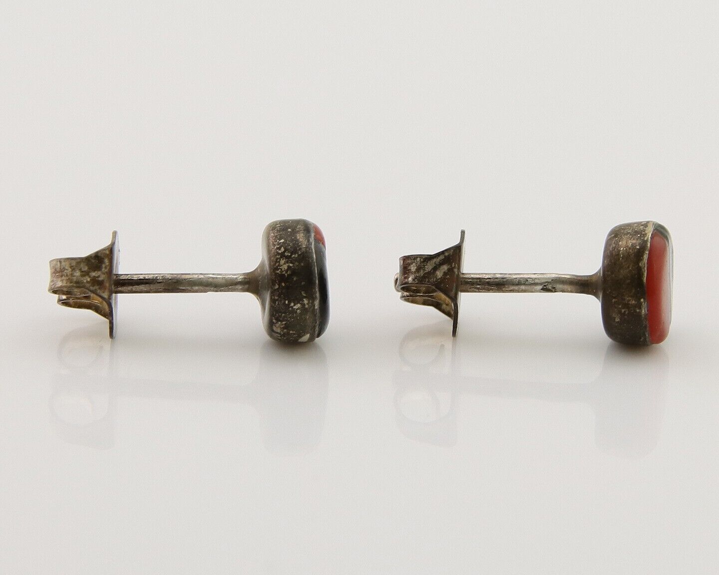 Navajo Earrings 925 Silver Inlaid Natural Onyx & Coral Native Artist C.80's