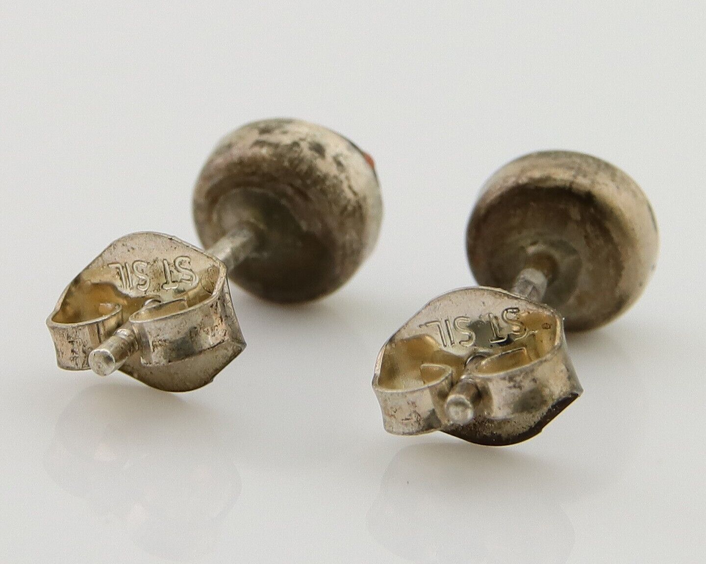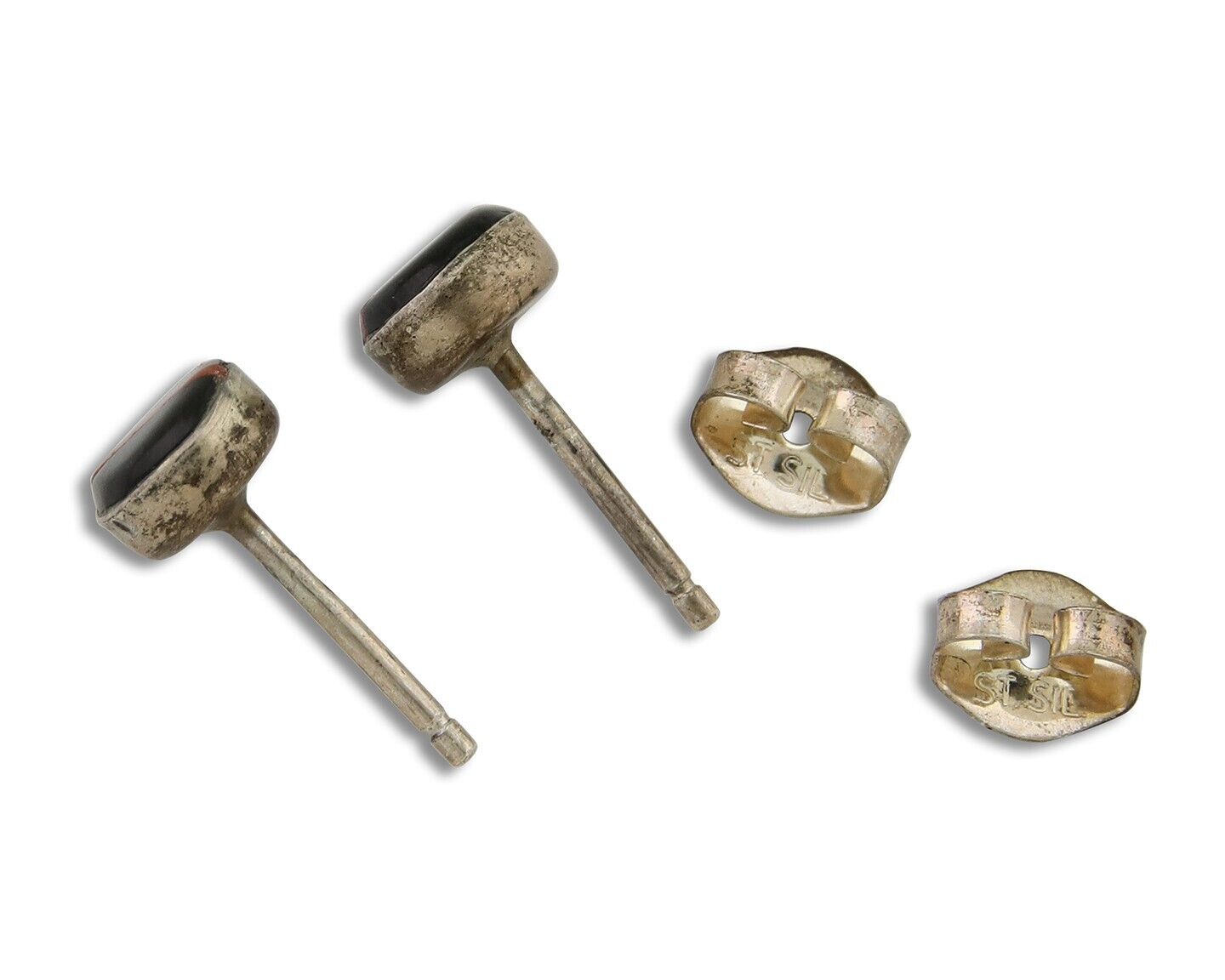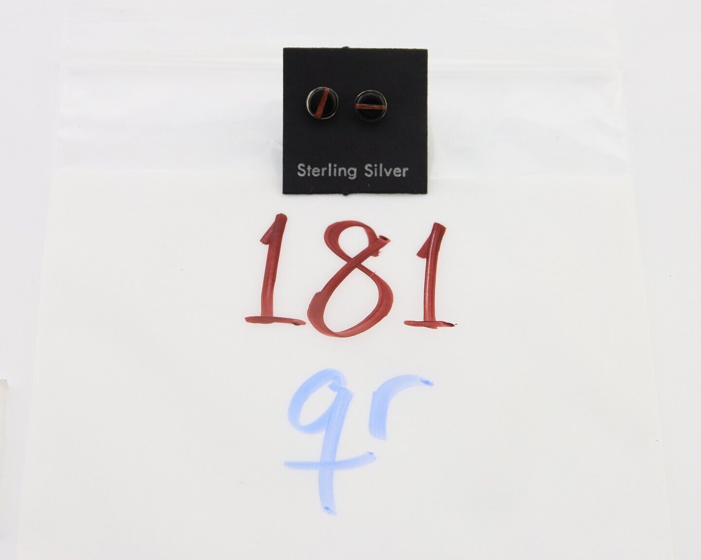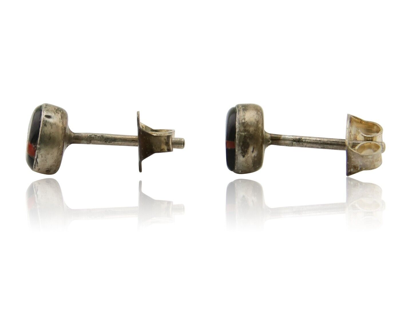 Navajo Earrings 925 Silver Inlaid Natural Onyx & Coral Native Artist C.80's