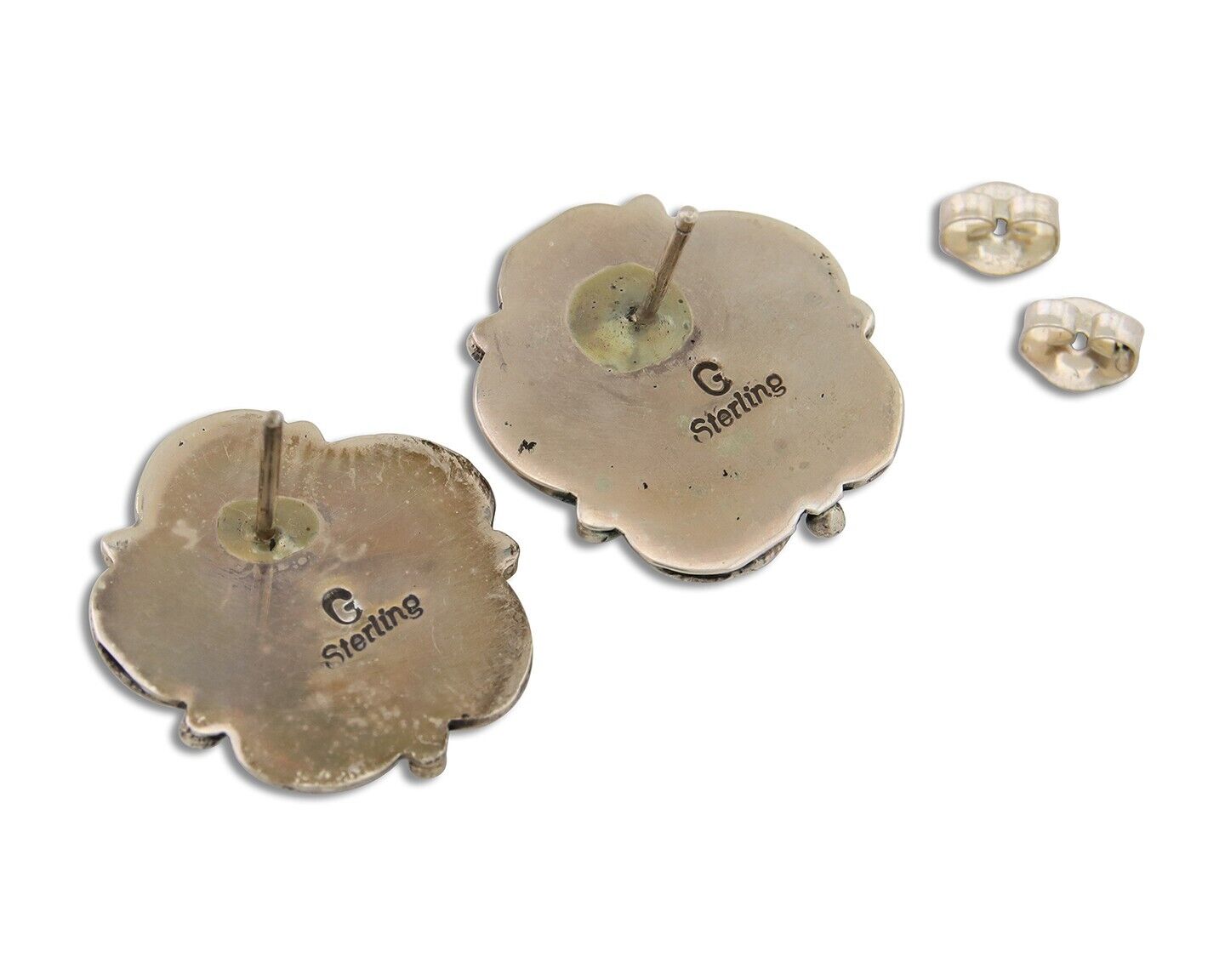 Navajo Earrings 925 Silver Inlaid Natural Turquoise Artist Signed G C.80s