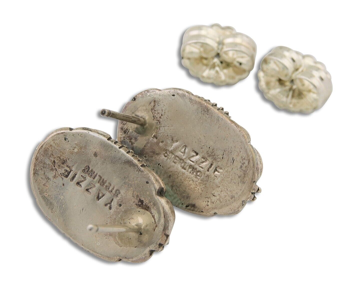 Navajo Earrings 925 Silver Inlaid Natural Turquoise Artist Signed L Yazzie C.80s