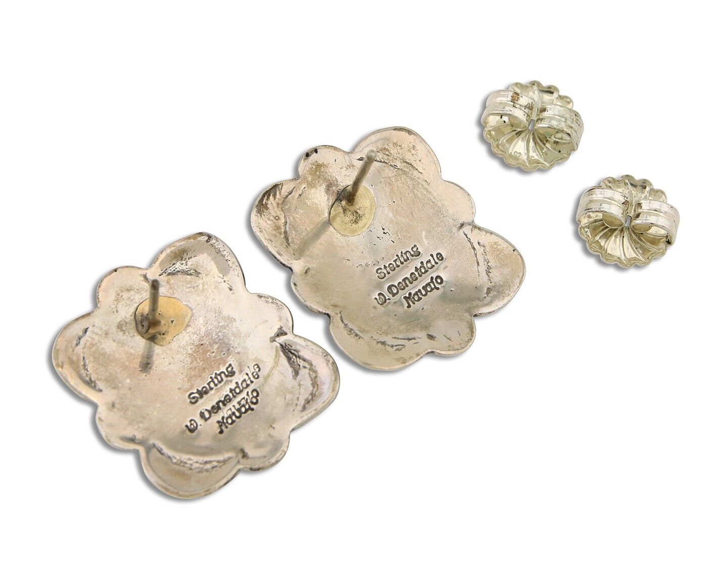 Navajo Earrings 925 Silver Inlaid Turquoise Artist Signed William Denetdale C80s
