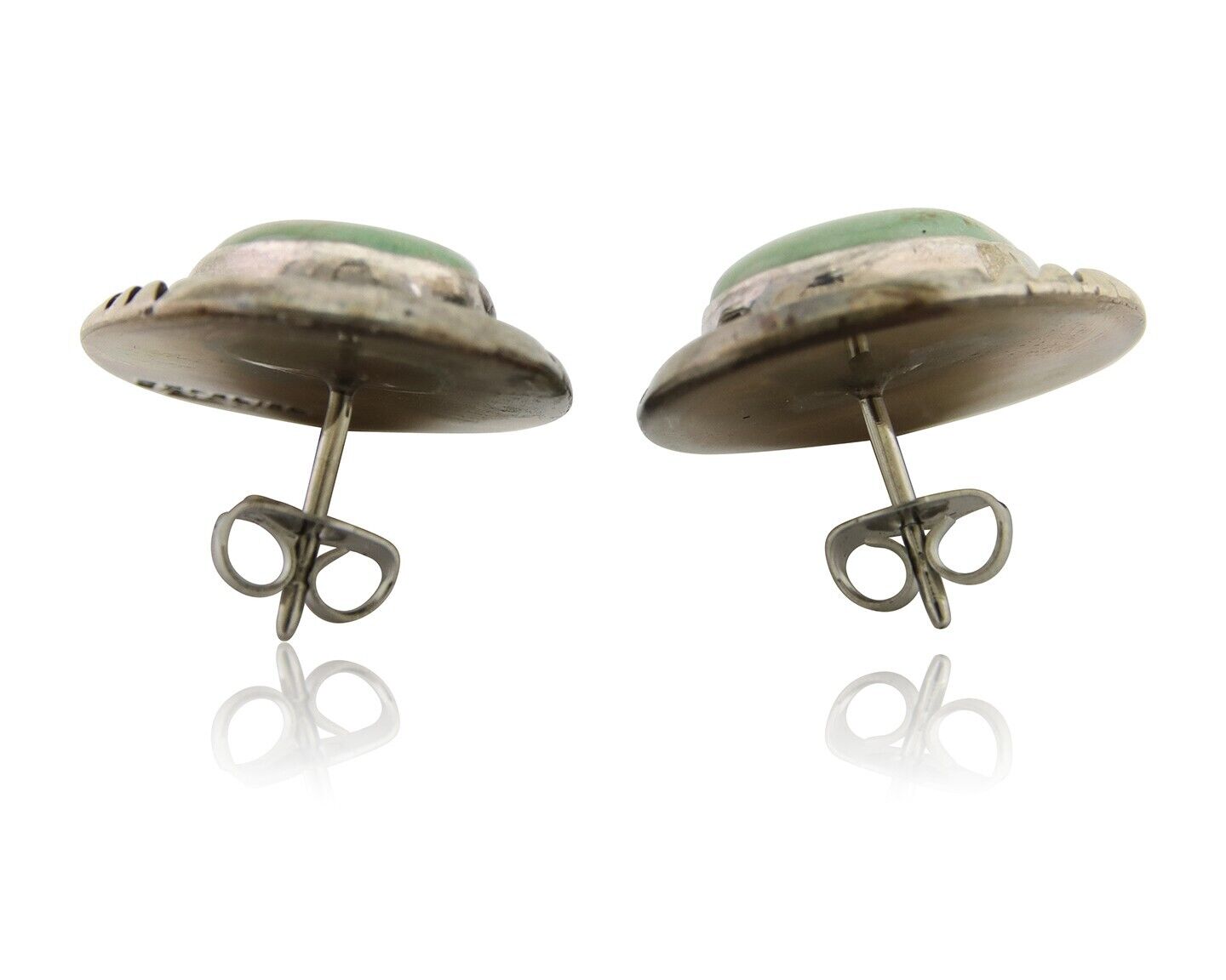 Navajo Earrings 925 Silver Kingman Turquoise Native American Artist C.80's