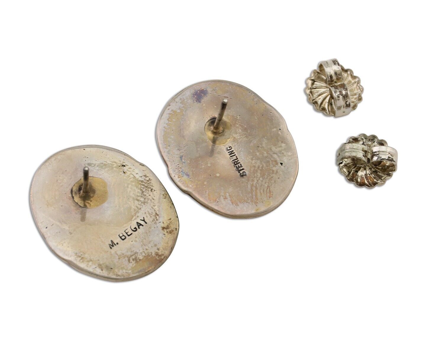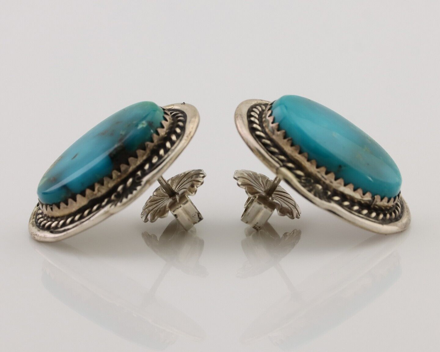 Navajo Earrings 925 Silver Mined Turquoise Artist Signed M Begay C.80's