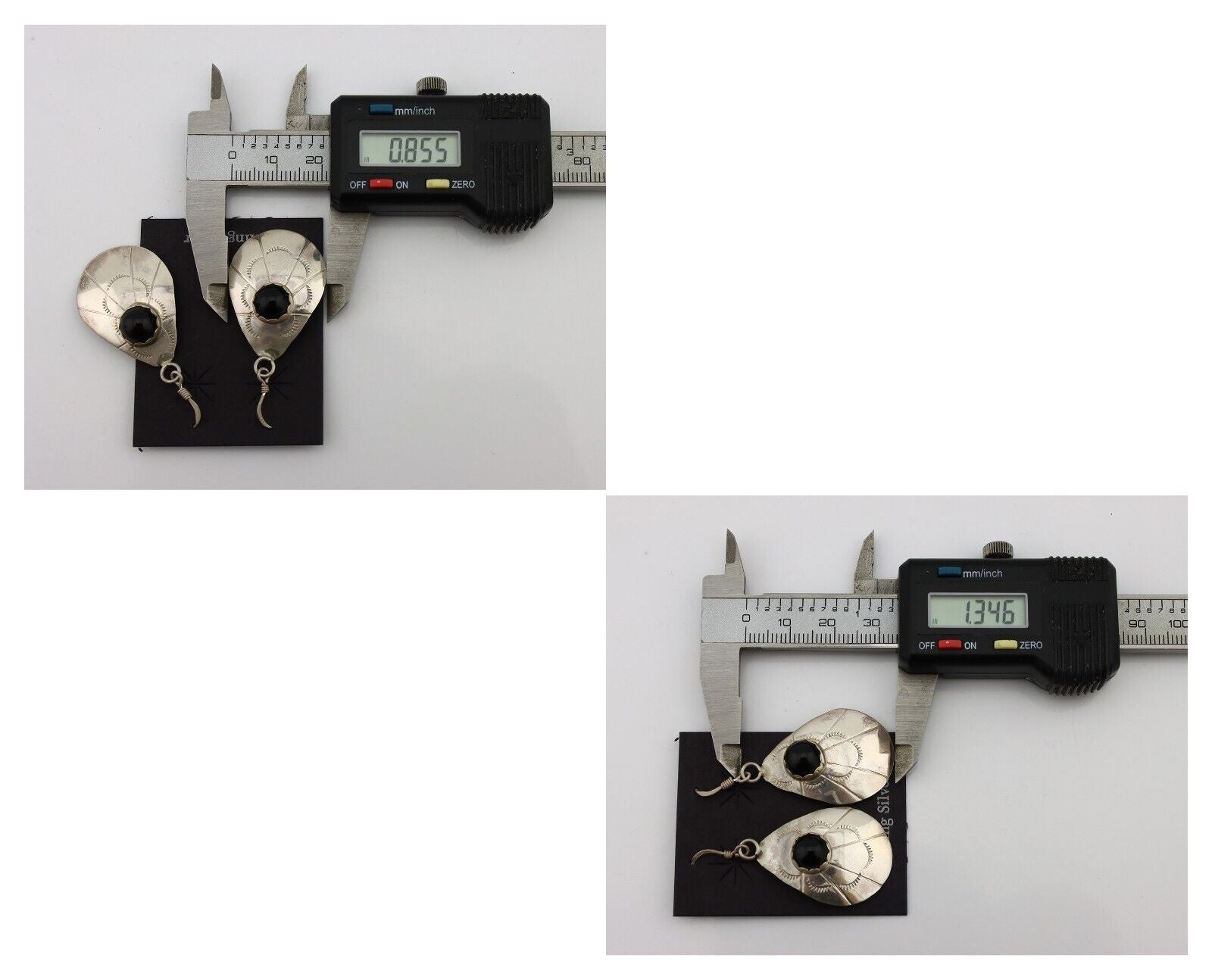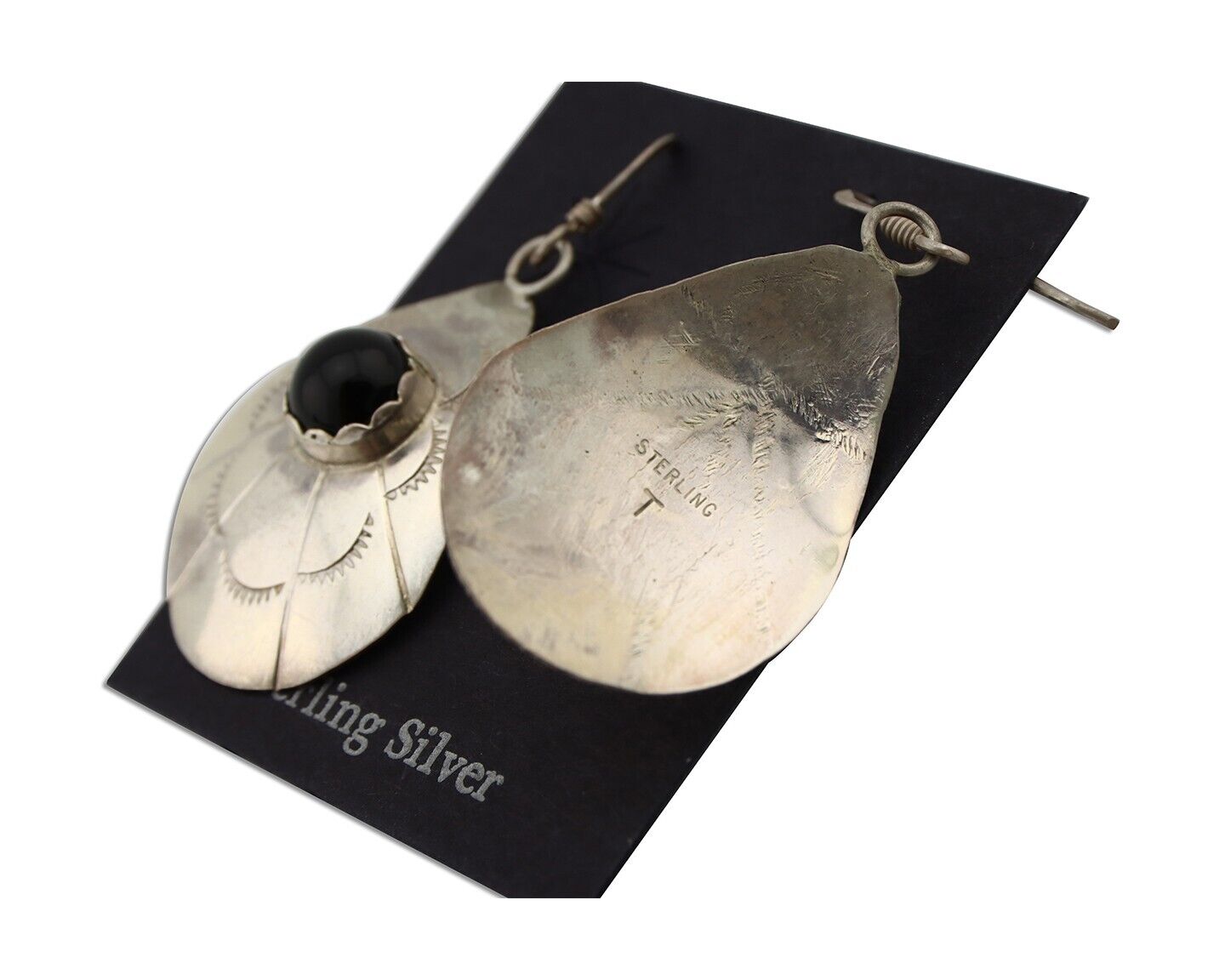 Navajo Earrings 925 Silver Natural Black Onyx Artist Signed T C.80's
