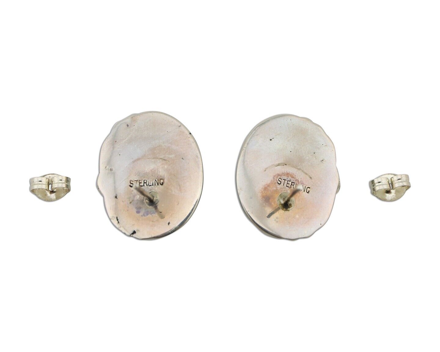 Navajo Earrings 925 Silver Natural Blue Turquoise Native American Artist C.80s
