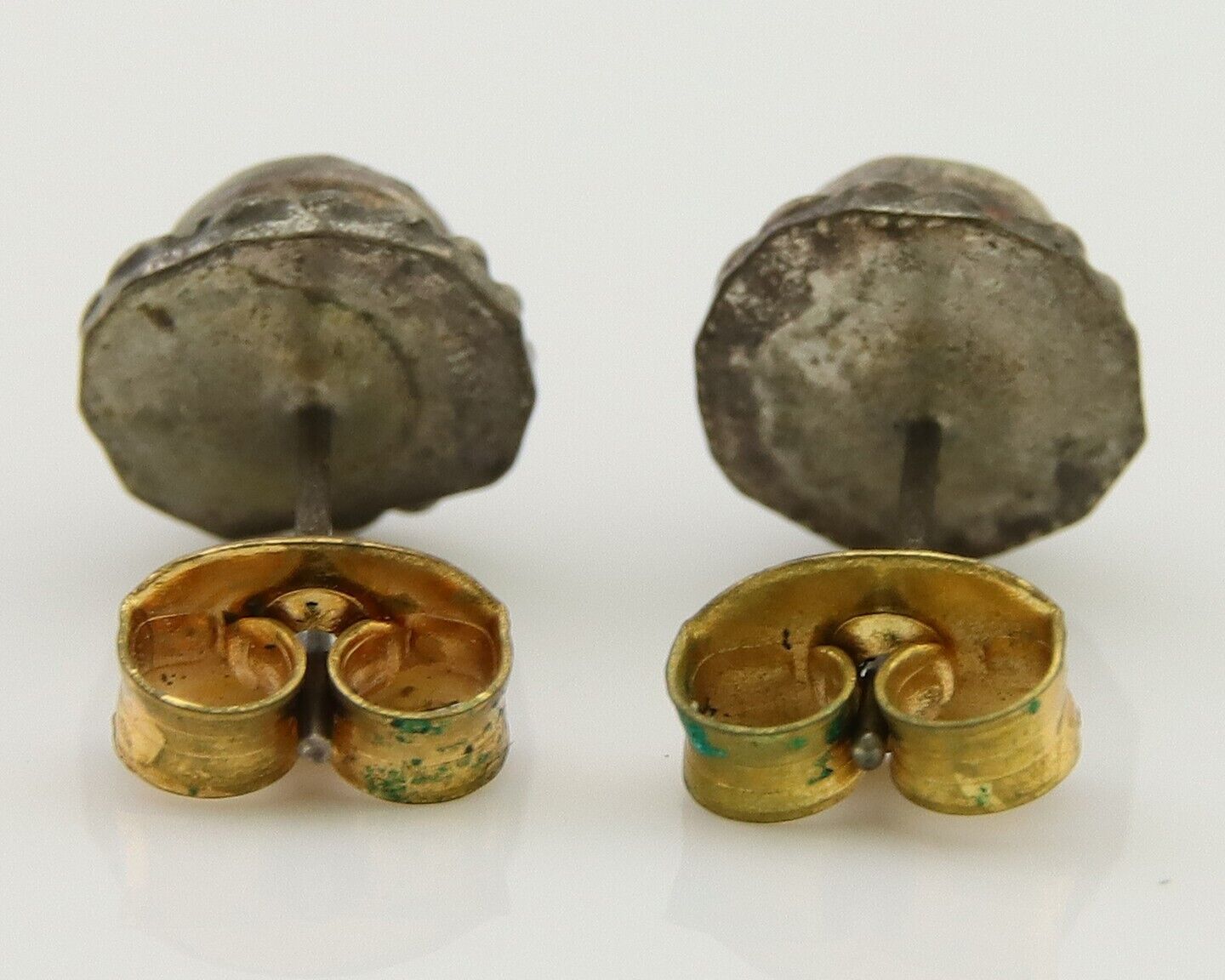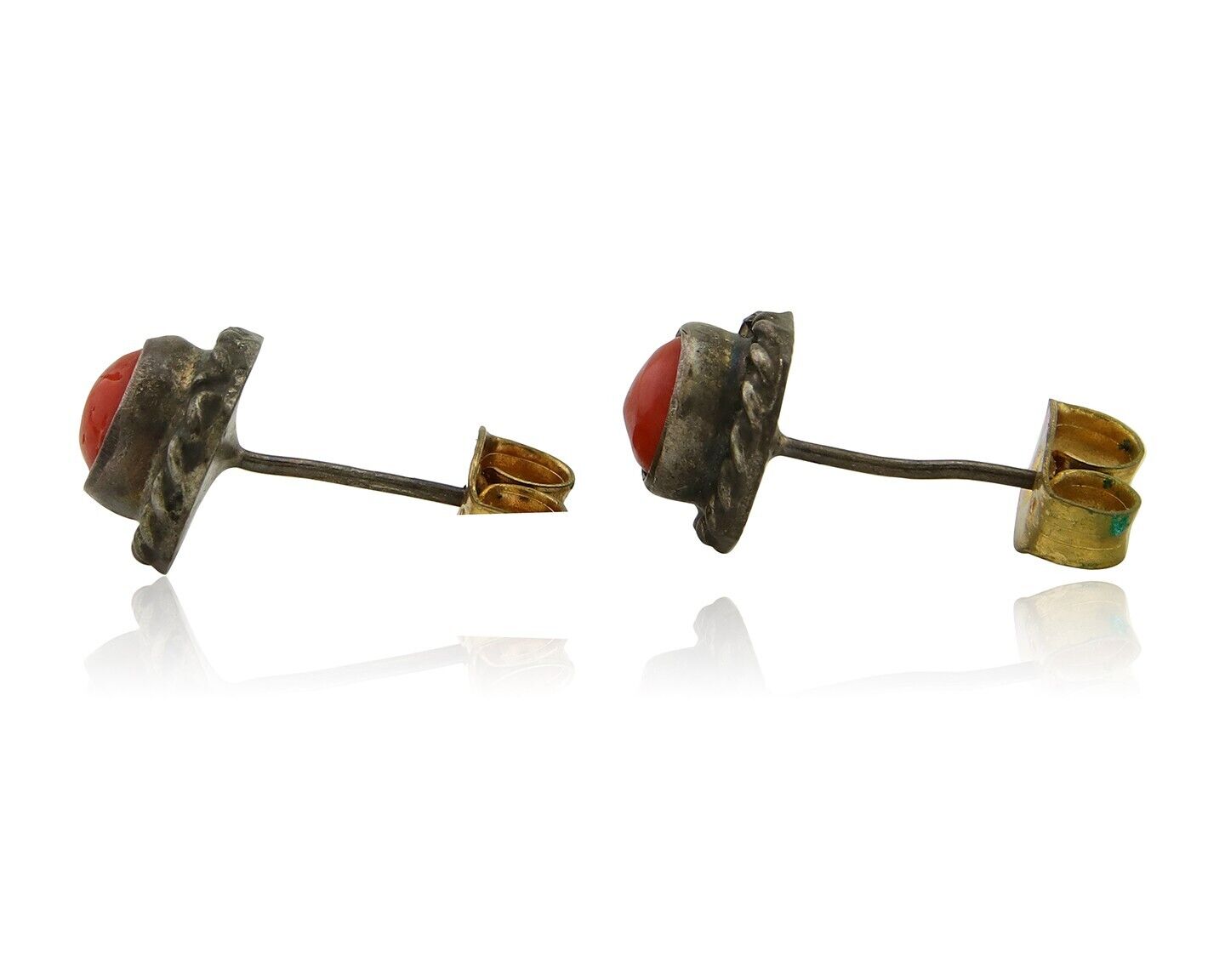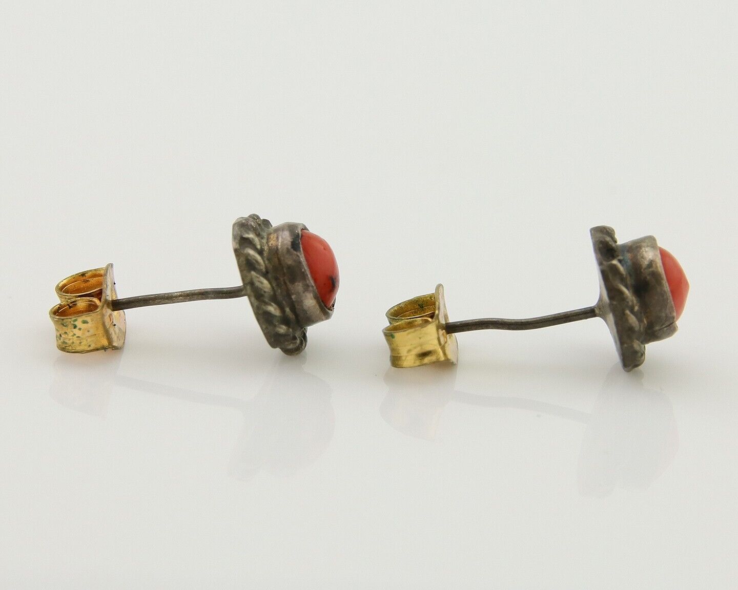 Navajo Earrings 925 Silver Natural Red Coral Native American Artist C.80's