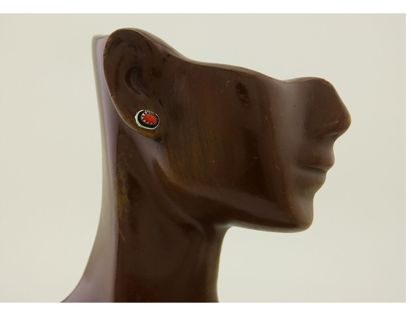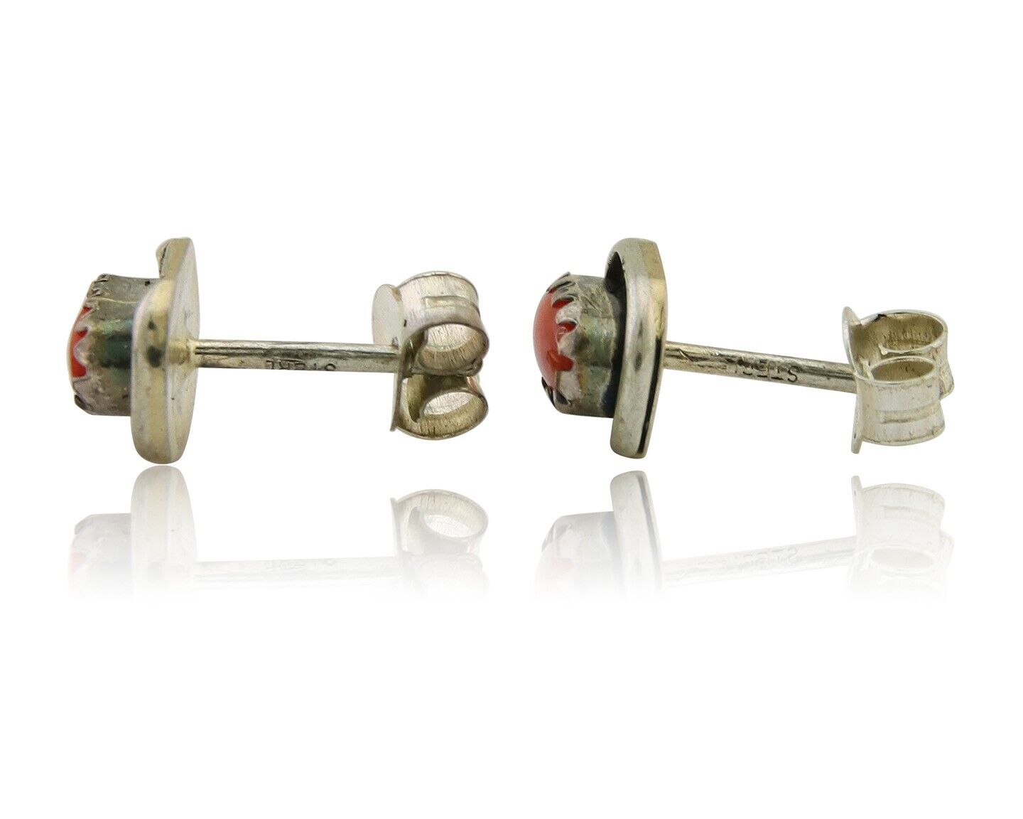 Navajo Earrings 925 Silver Natural Red Coral Native American Artist C.80's