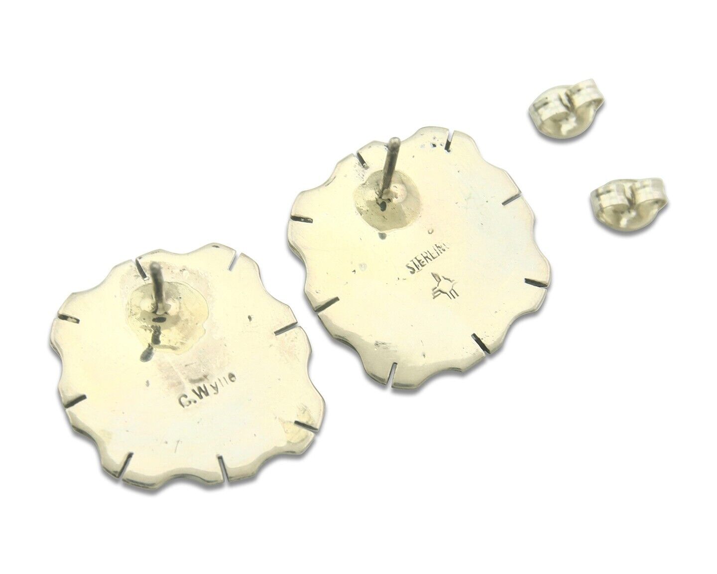 Navajo Earrings 925 Silver Natural Turquoise Artist Signed C Wylie C.80's