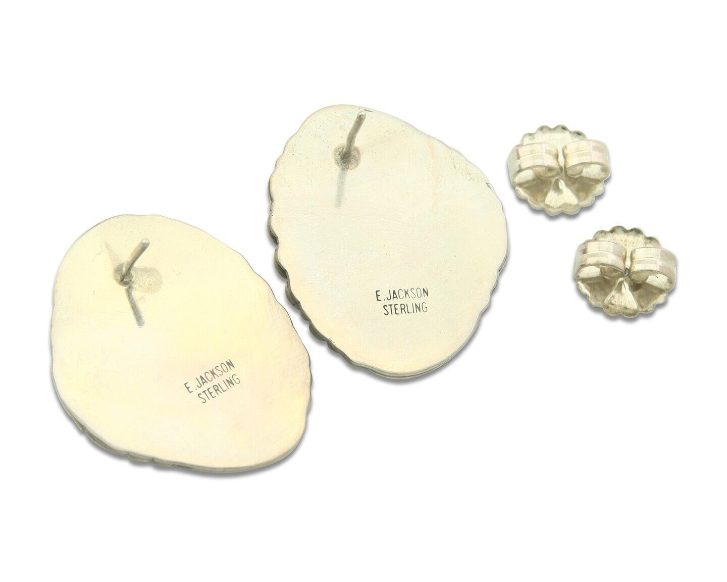 Navajo Earrings 925 Silver Natural Turquoise Artist Signed E Jackson C.80's