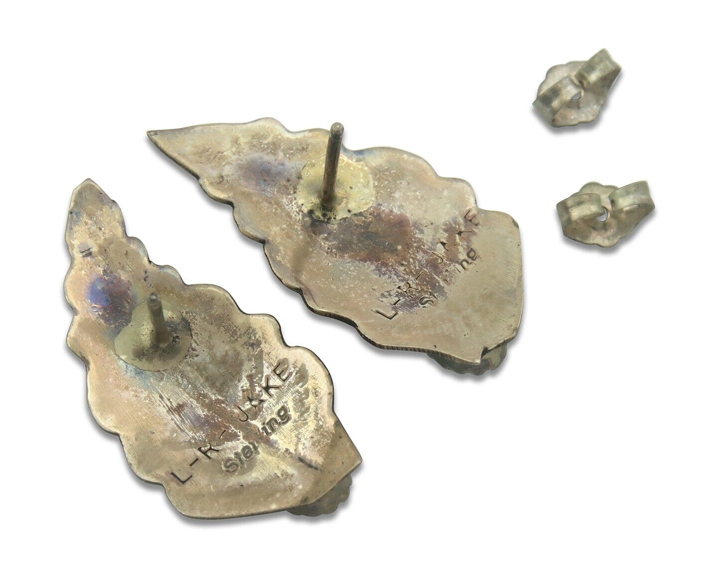 Navajo Earrings 925 Silver Natural Turquoise Artist Signed L-R JAKE C.80's