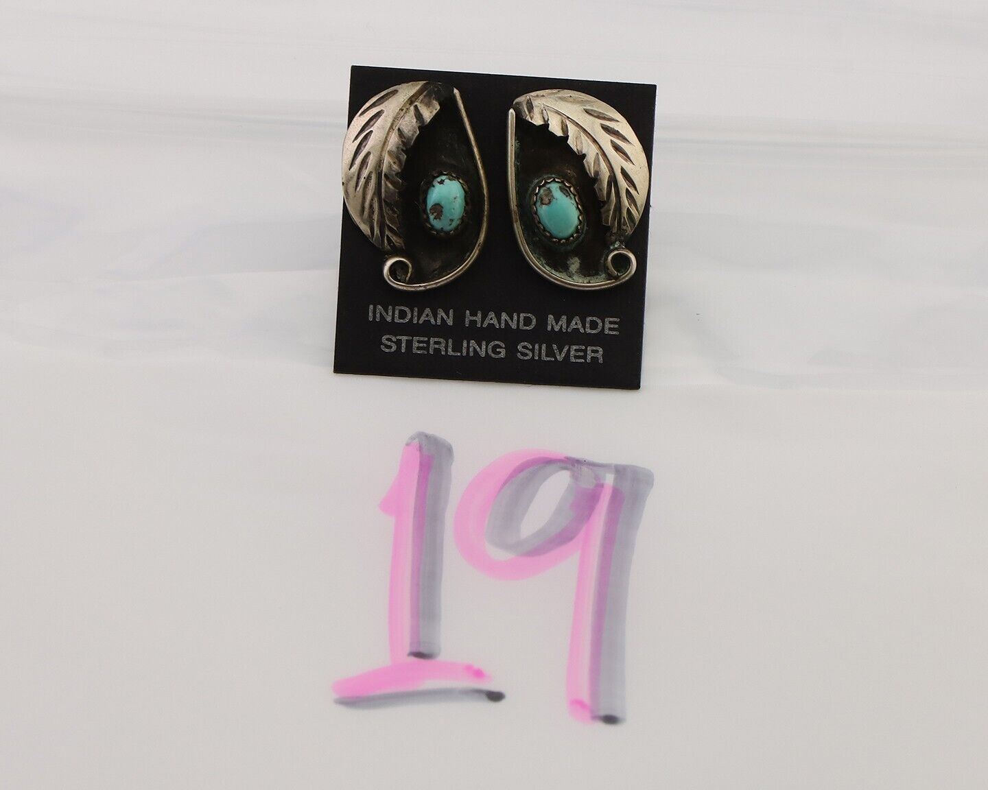 Navajo Earrings 925 Silver Natural Turquoise Native American Artist C.80's