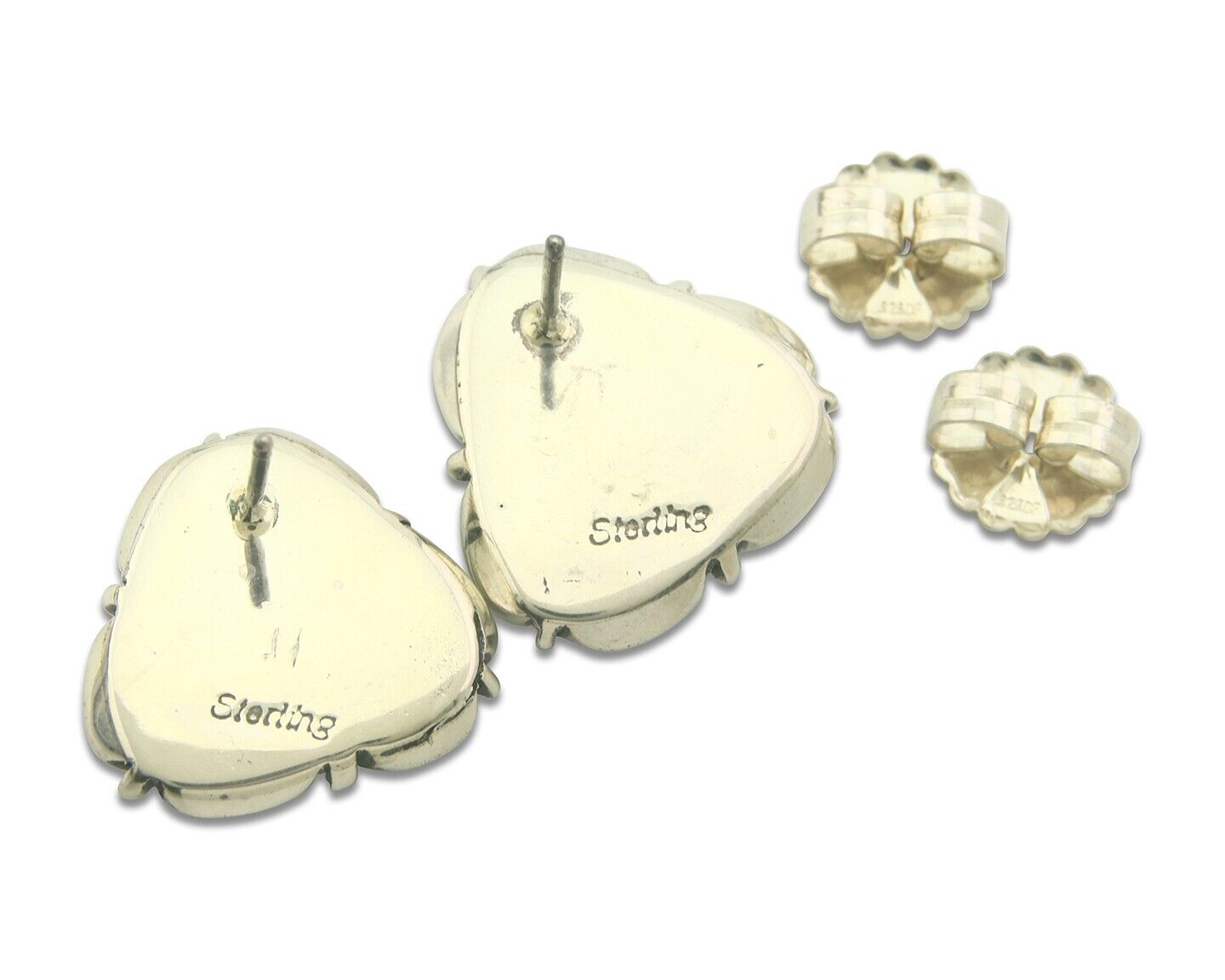 Navajo Earrings 925 Silver Natural Turquoise Native Artist Signed H? C.80's