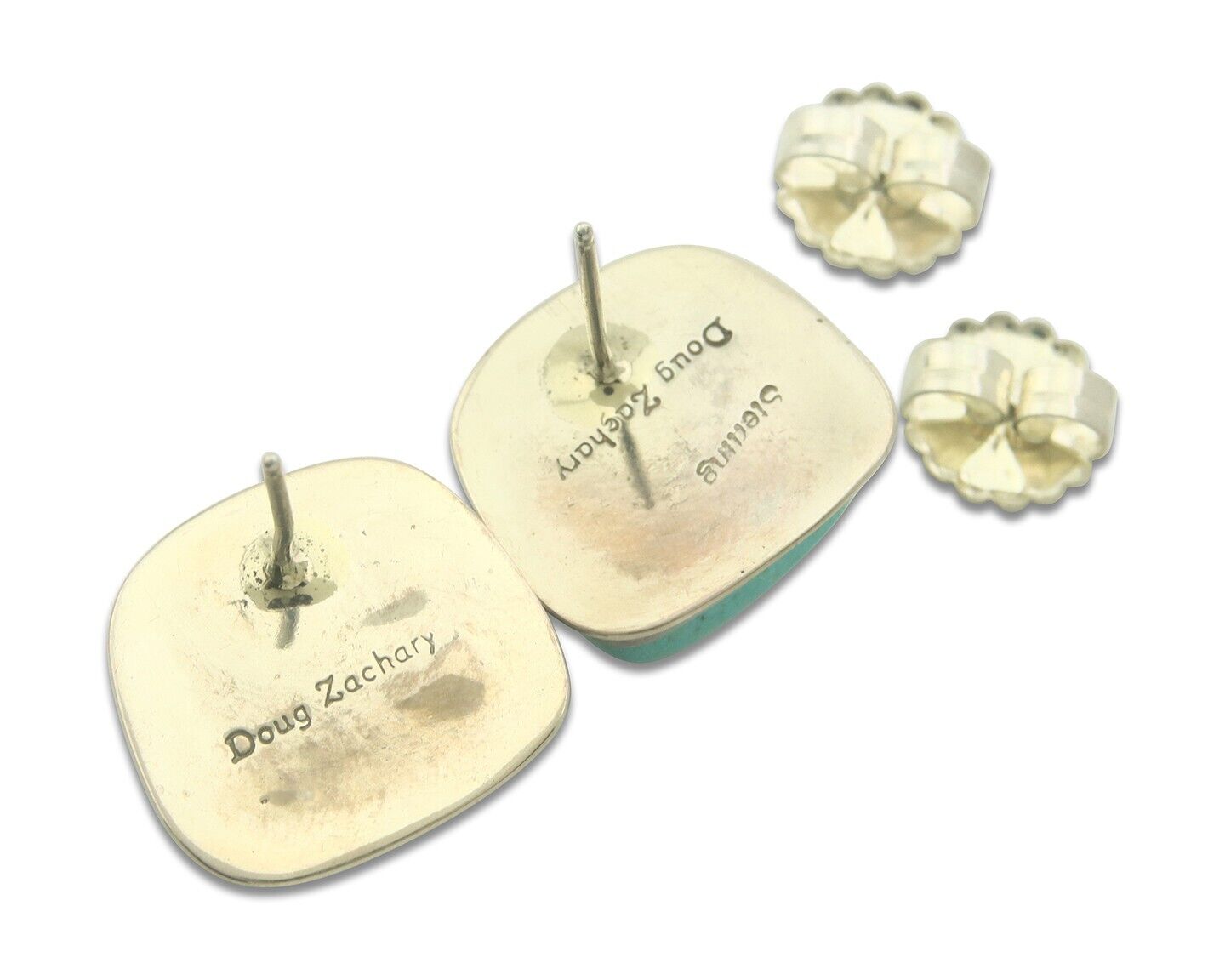 Navajo Earrings 925 Silver Turquoise Native Artist Signed Doug Zachary C.80's