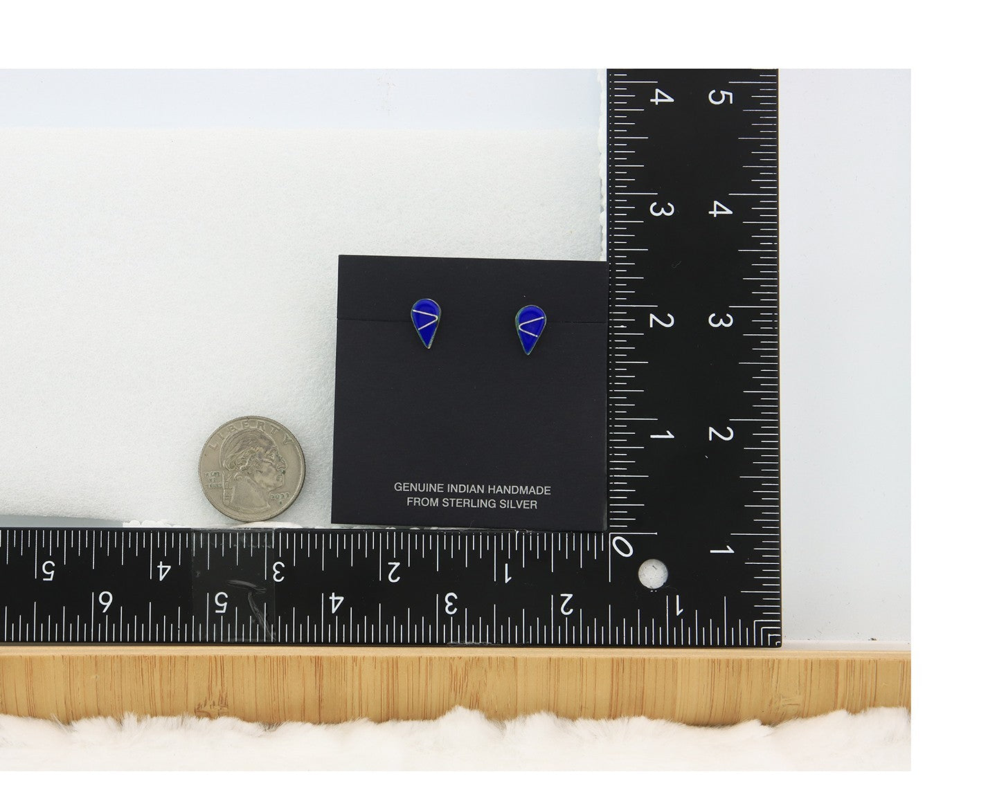 Navajo Earrings Sterling Silver Inlaid Natural Lapis Vintage Handmade