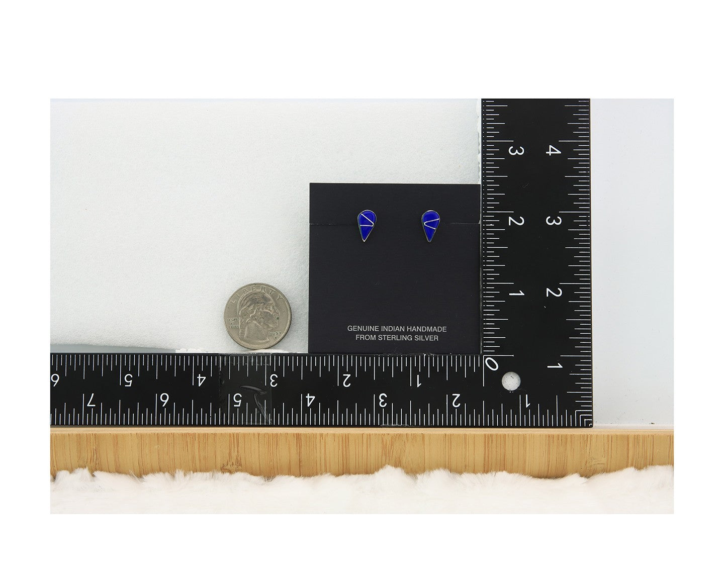 Navajo Earrings Sterling Silver Inlaid Natural Lapis Vintage Handmade