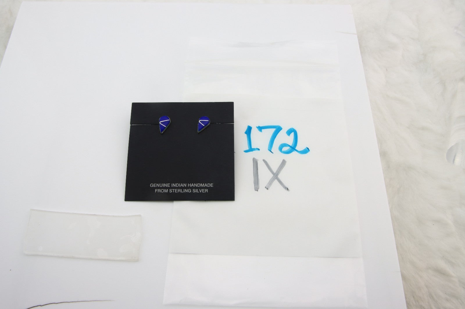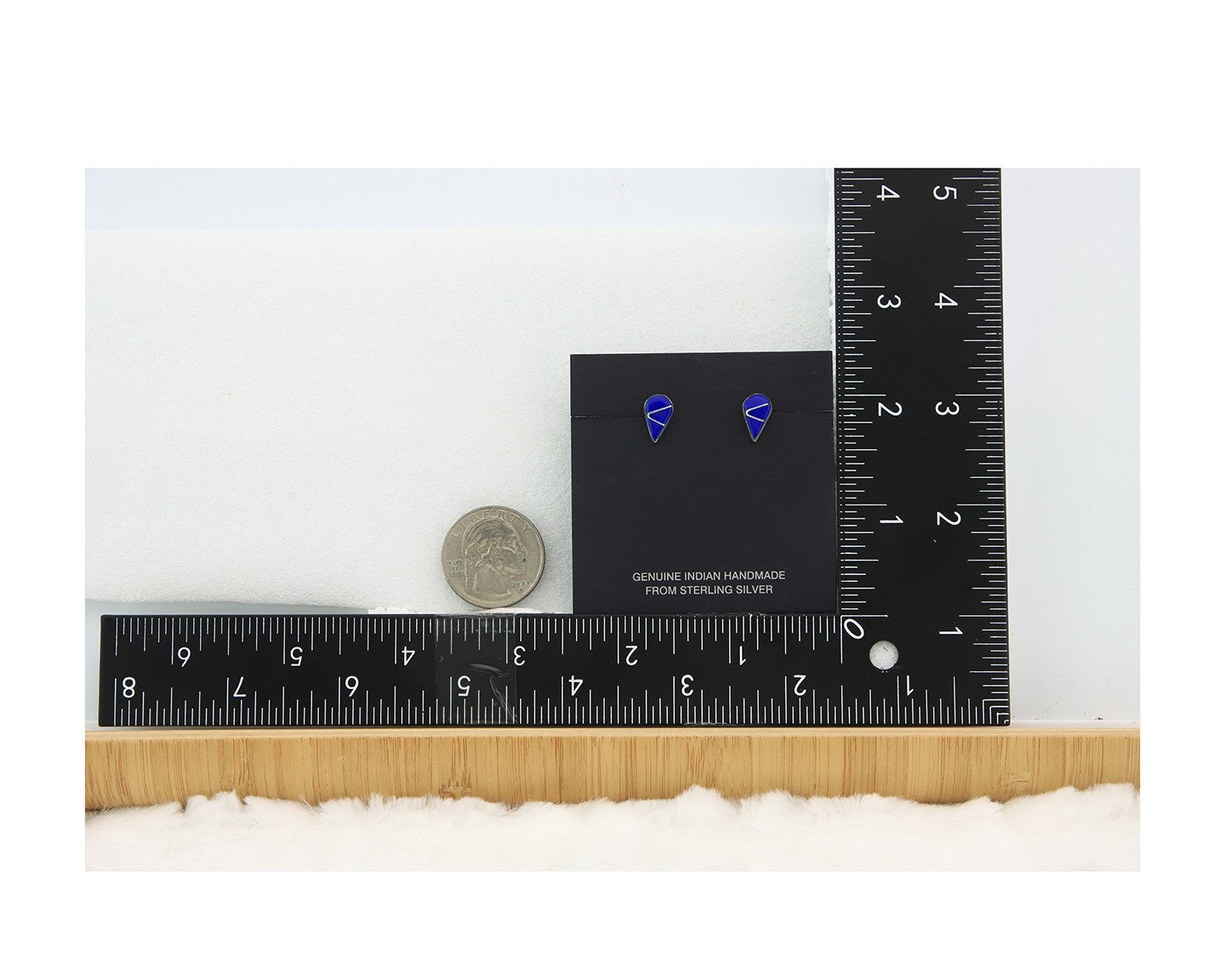 Navajo Earrings Sterling Silver Inlaid Natural Lapis Vintage Handmade