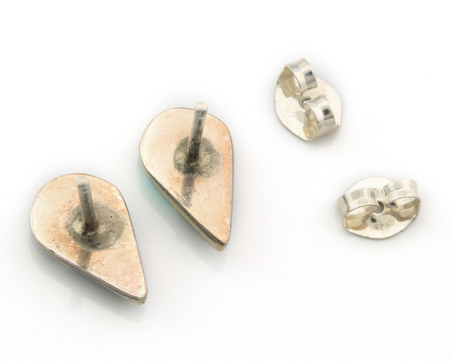 Navajo Earrings Sterling Silver Inlaid Onyx & Turquoise Vintage