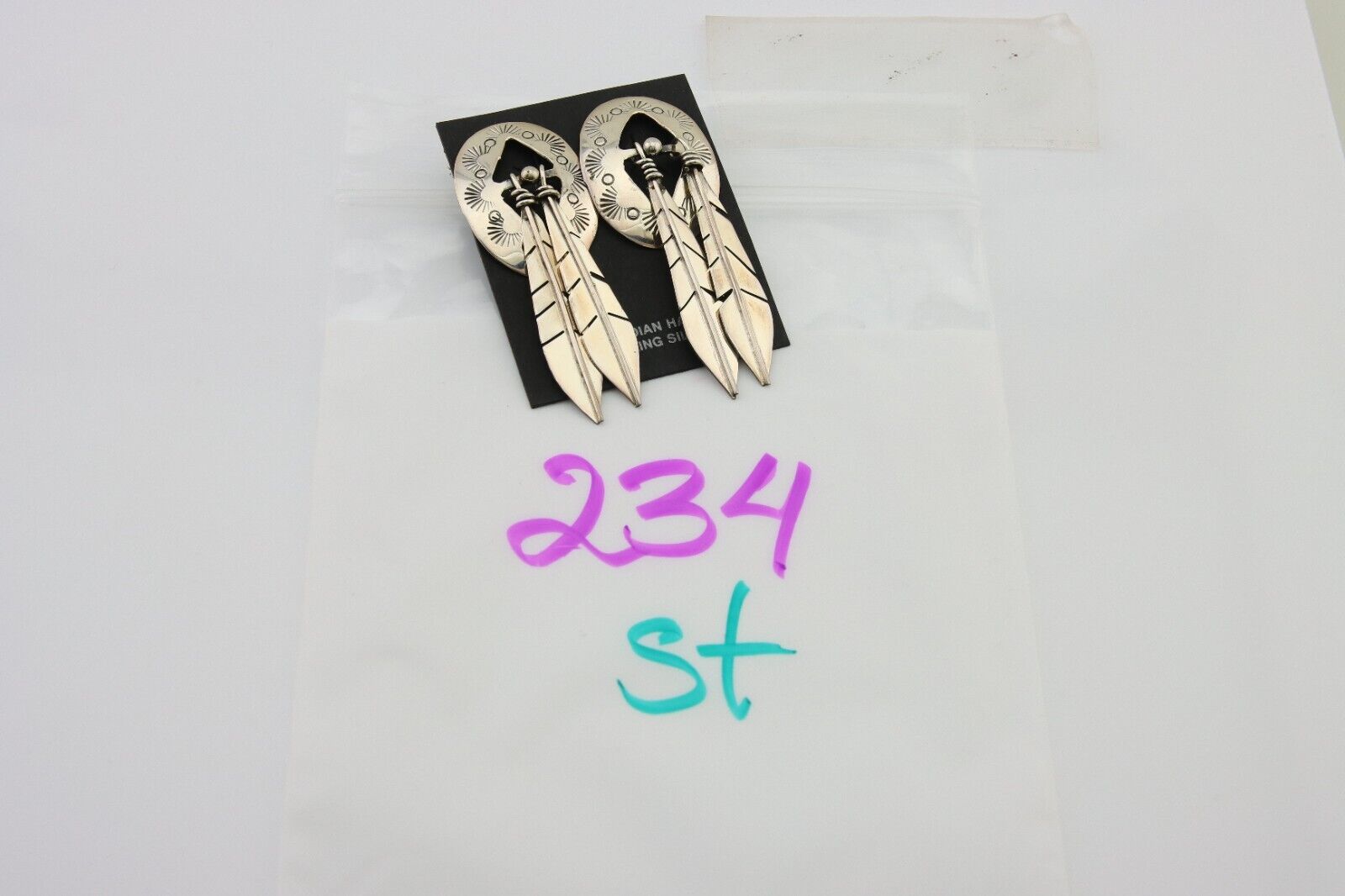 Navajo Feather Earrings 925 Silver Dangle Artist Signed DISHTA C.80's