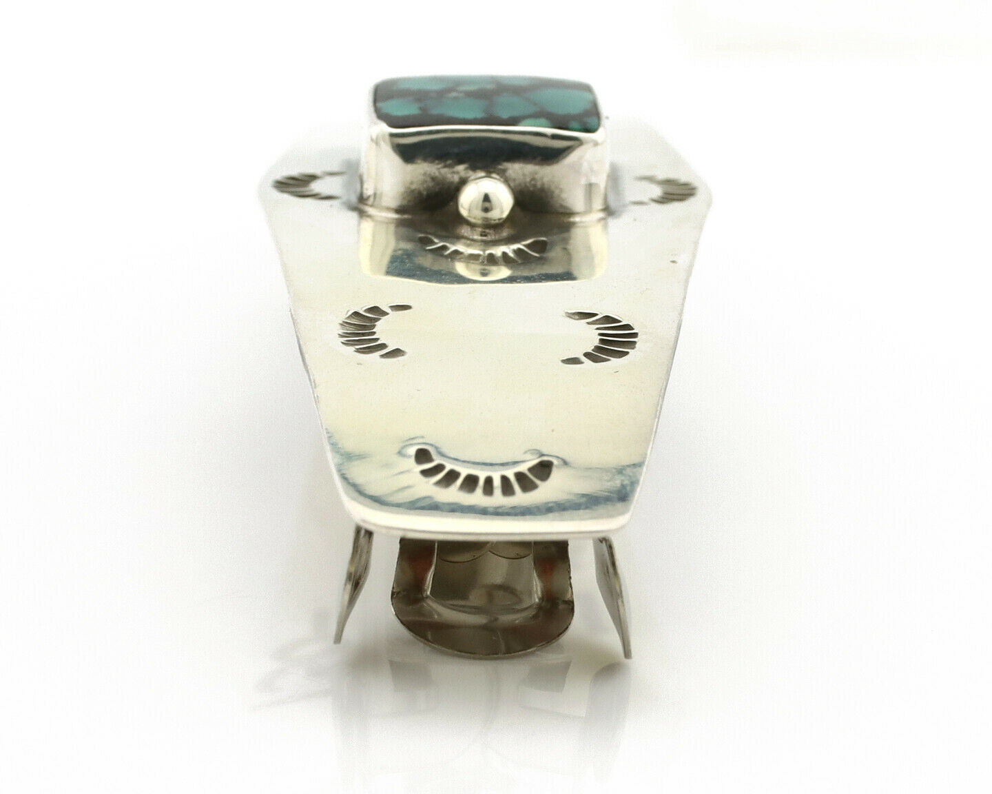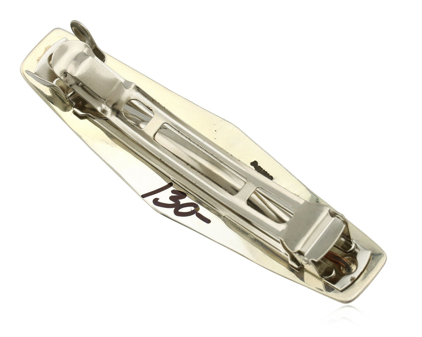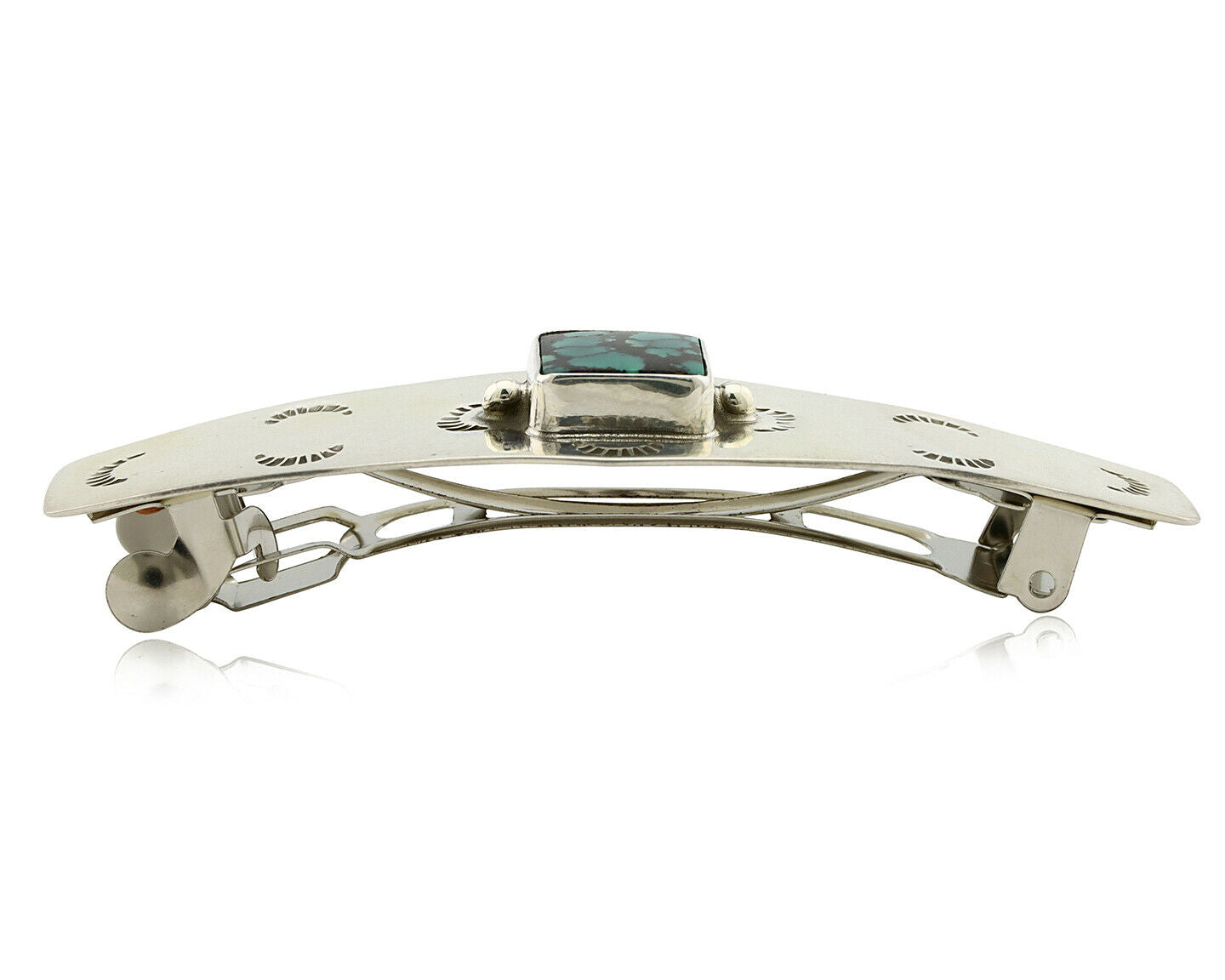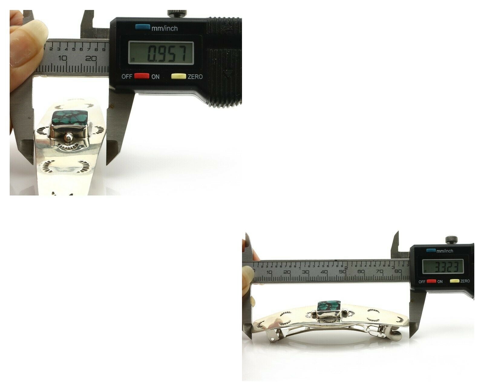 Navajo Hair Clip .925 Silver Green Spiderweb Turquoise Barrette C.80's