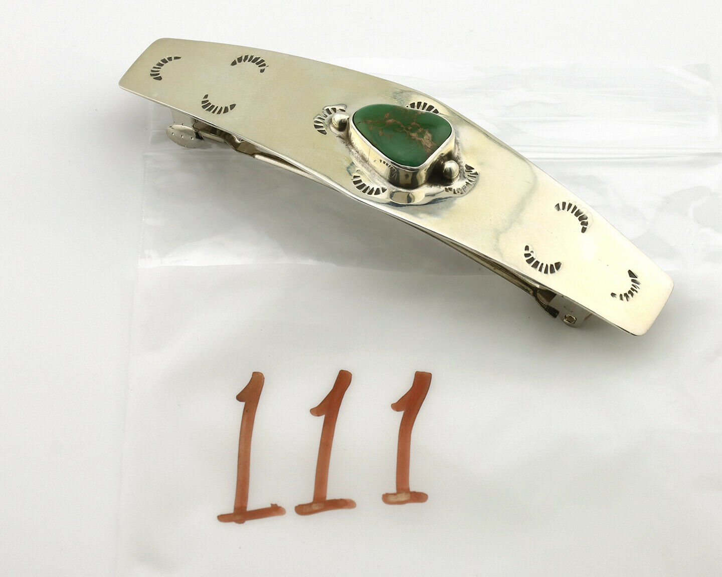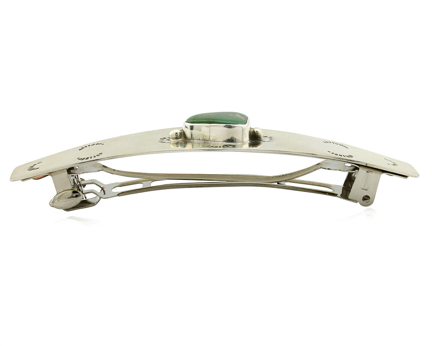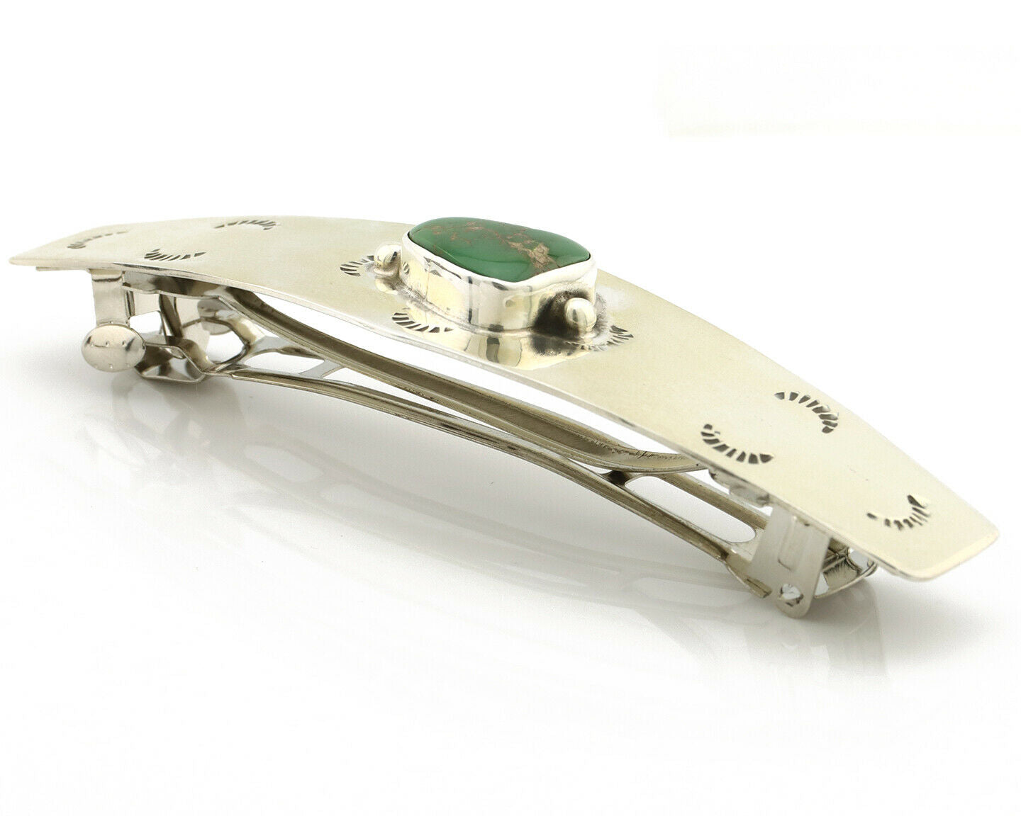 Navajo Hair Clip .925 Silver Green Turquoise Native American Barrette C.80's